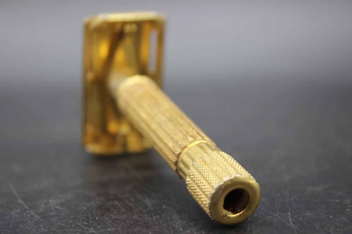 Vintage Gold Gillette Aristocrat Safety Razor, there is no significant damage to the razor and is in good condition. The mechanism that opens the safety razor works perfectly, check pictures for more details and for sizing.