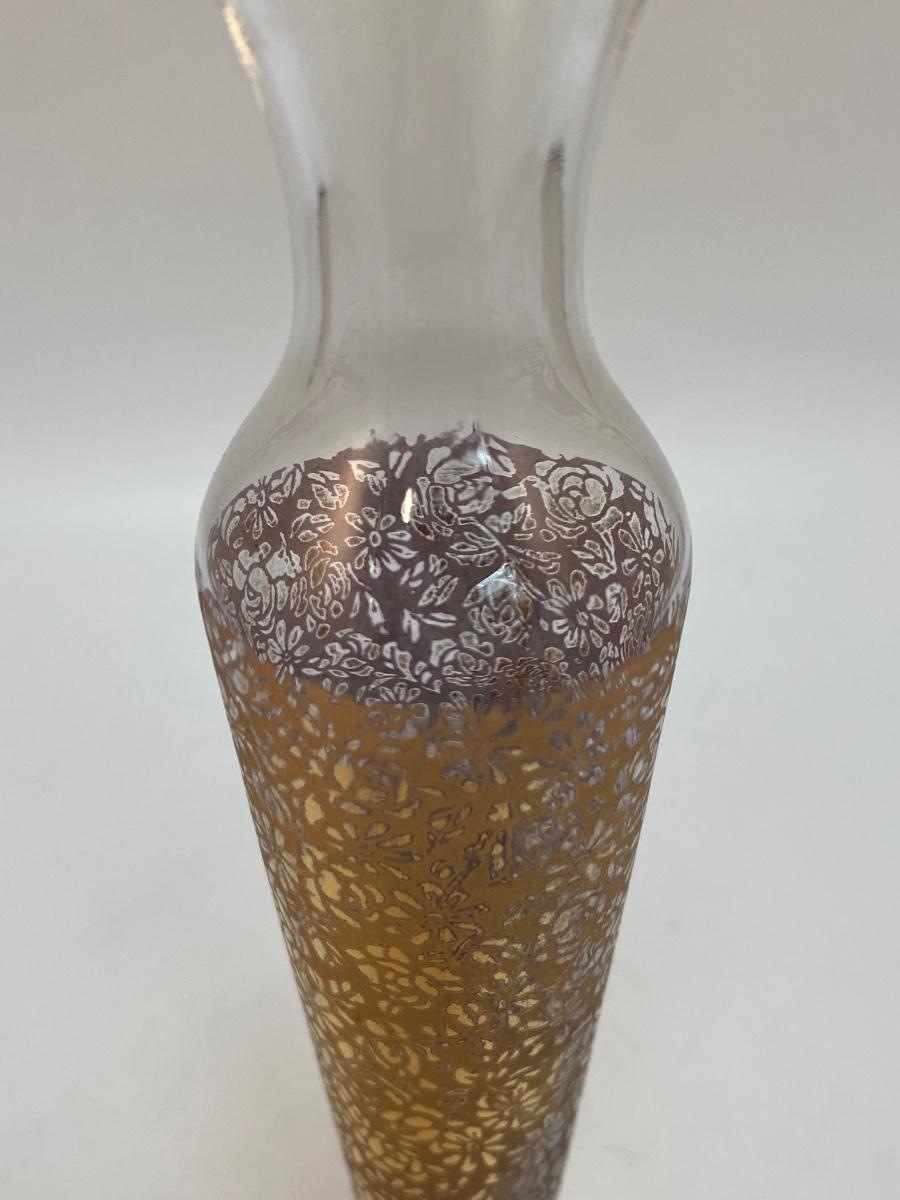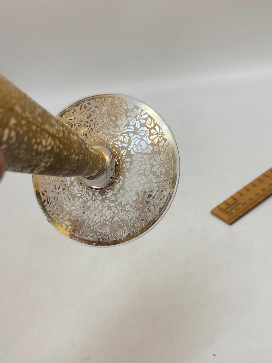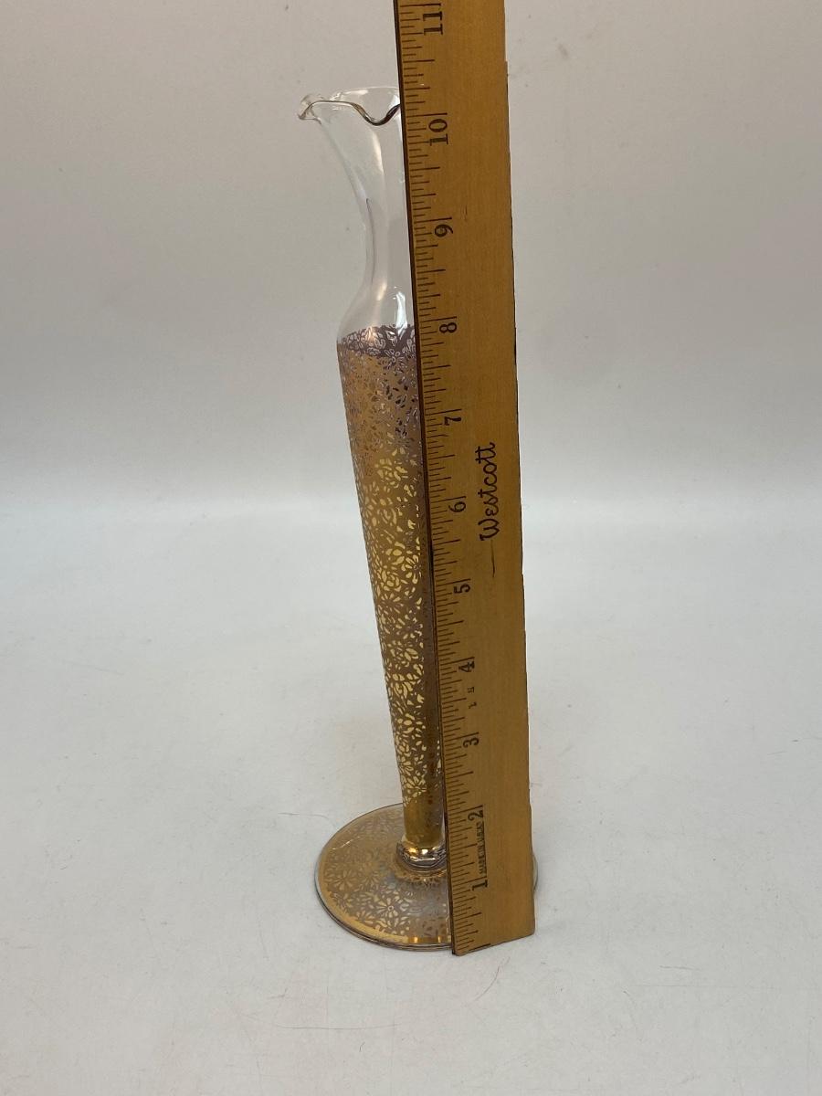 Vintage Gold Gilt Filigree Painted Bud Vase. Some wear to the design from age and use.