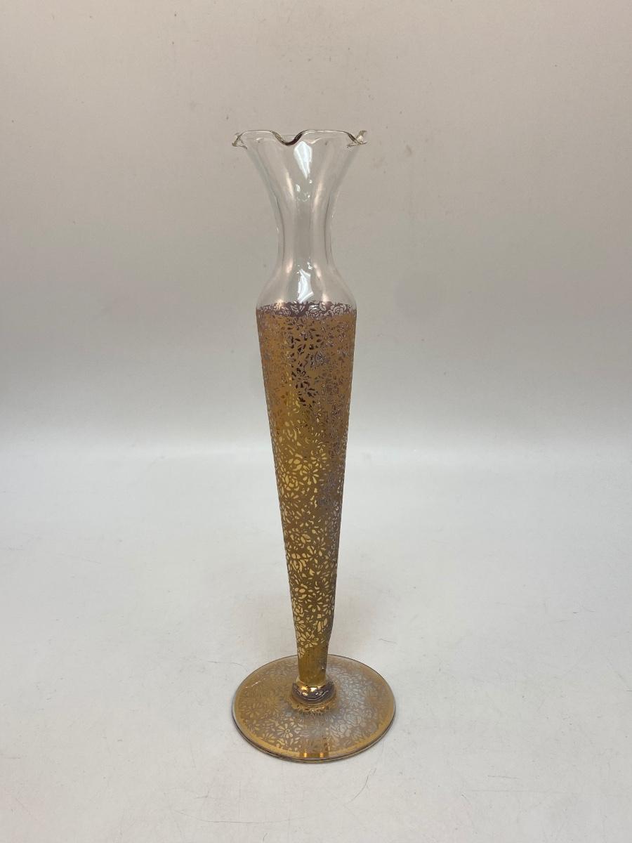 Vintage Gold Gilt Filigree Painted Bud Vase