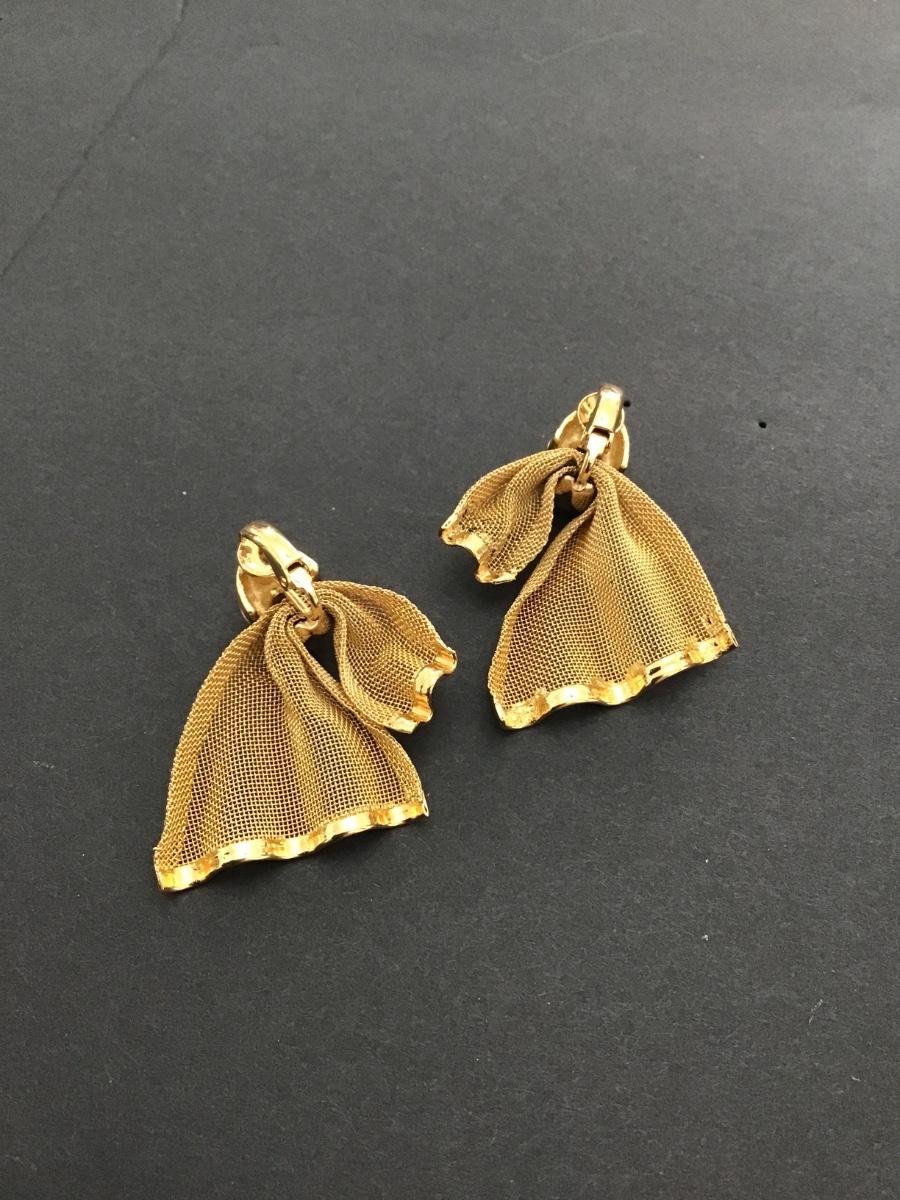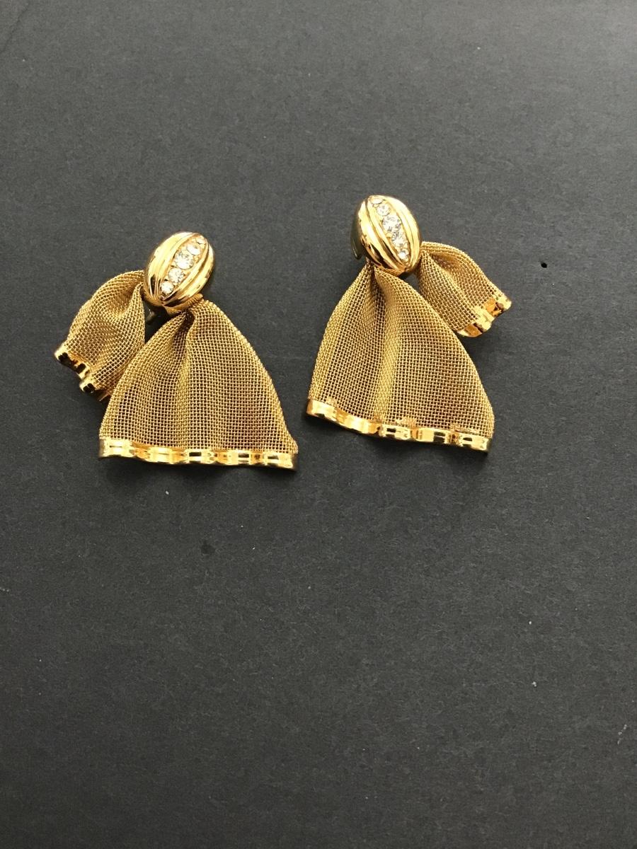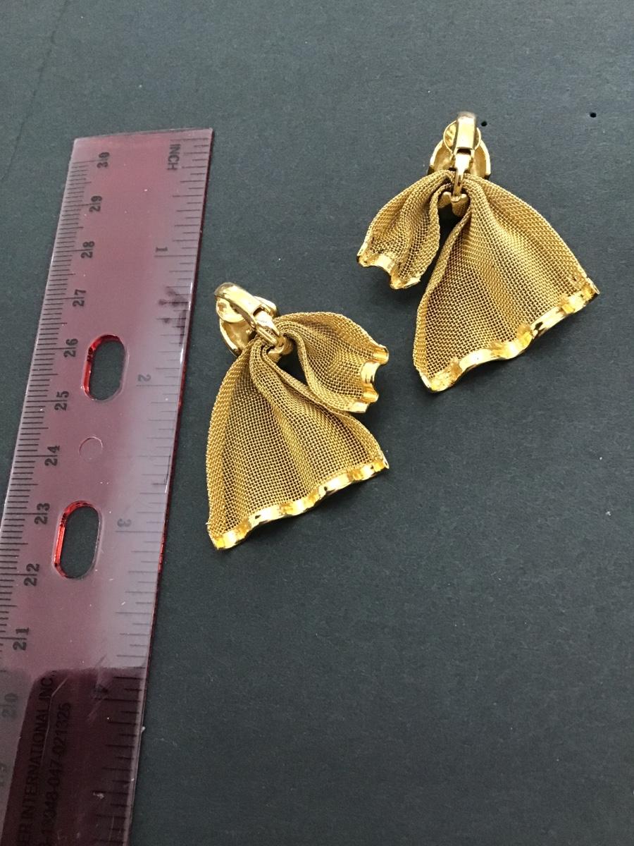 Vintage gold gilt mesh bow clip on earrings. Please see attached photos.