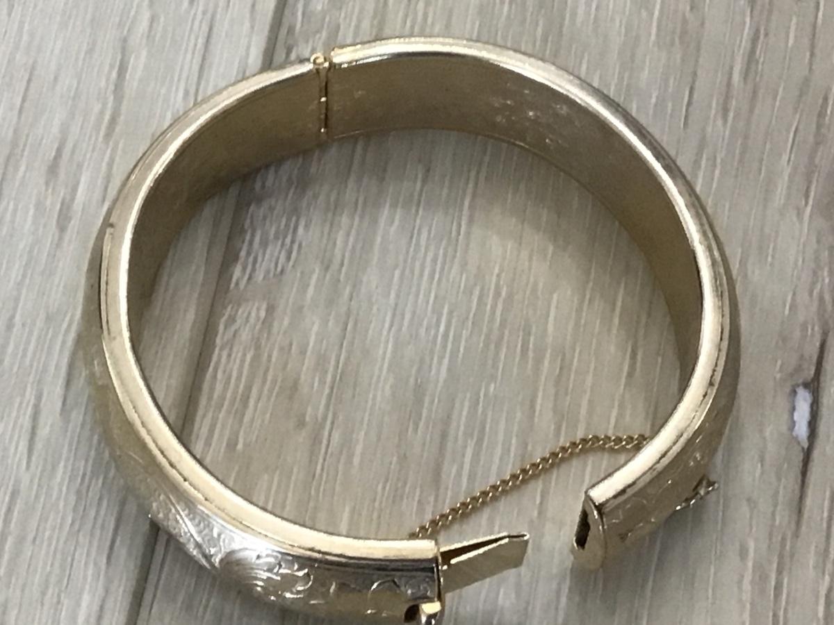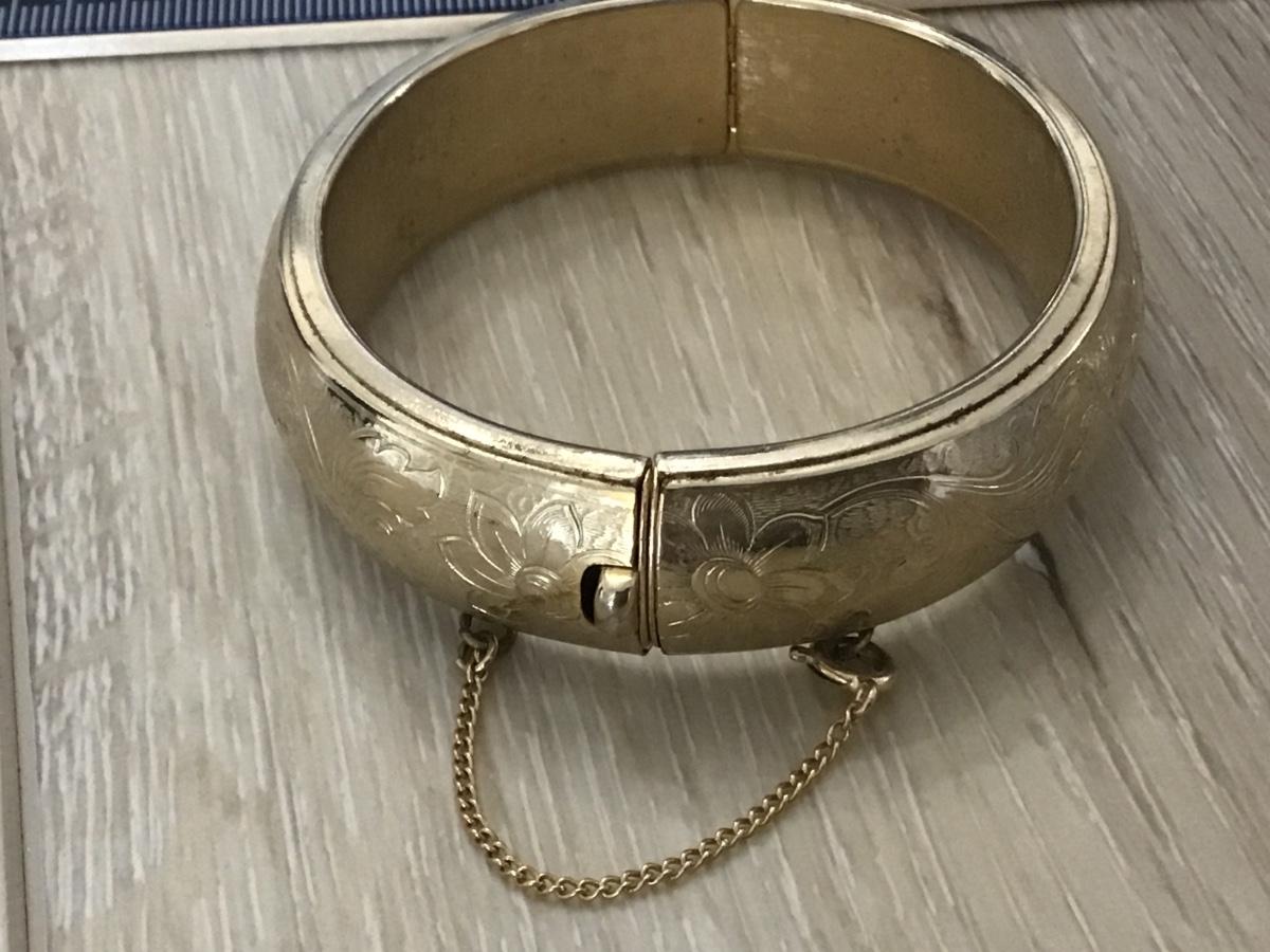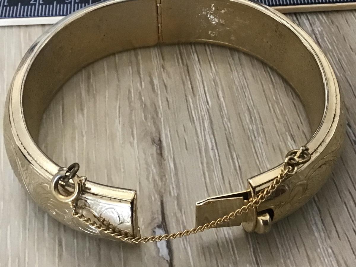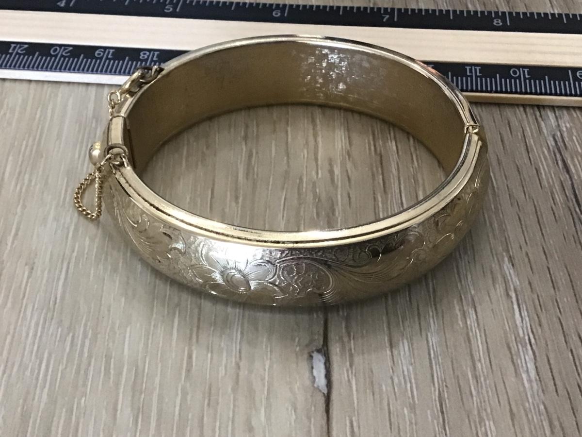 Vintage Gold Hinged Scrolled Bracelet. Great Condition for age