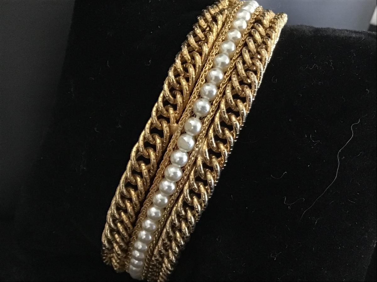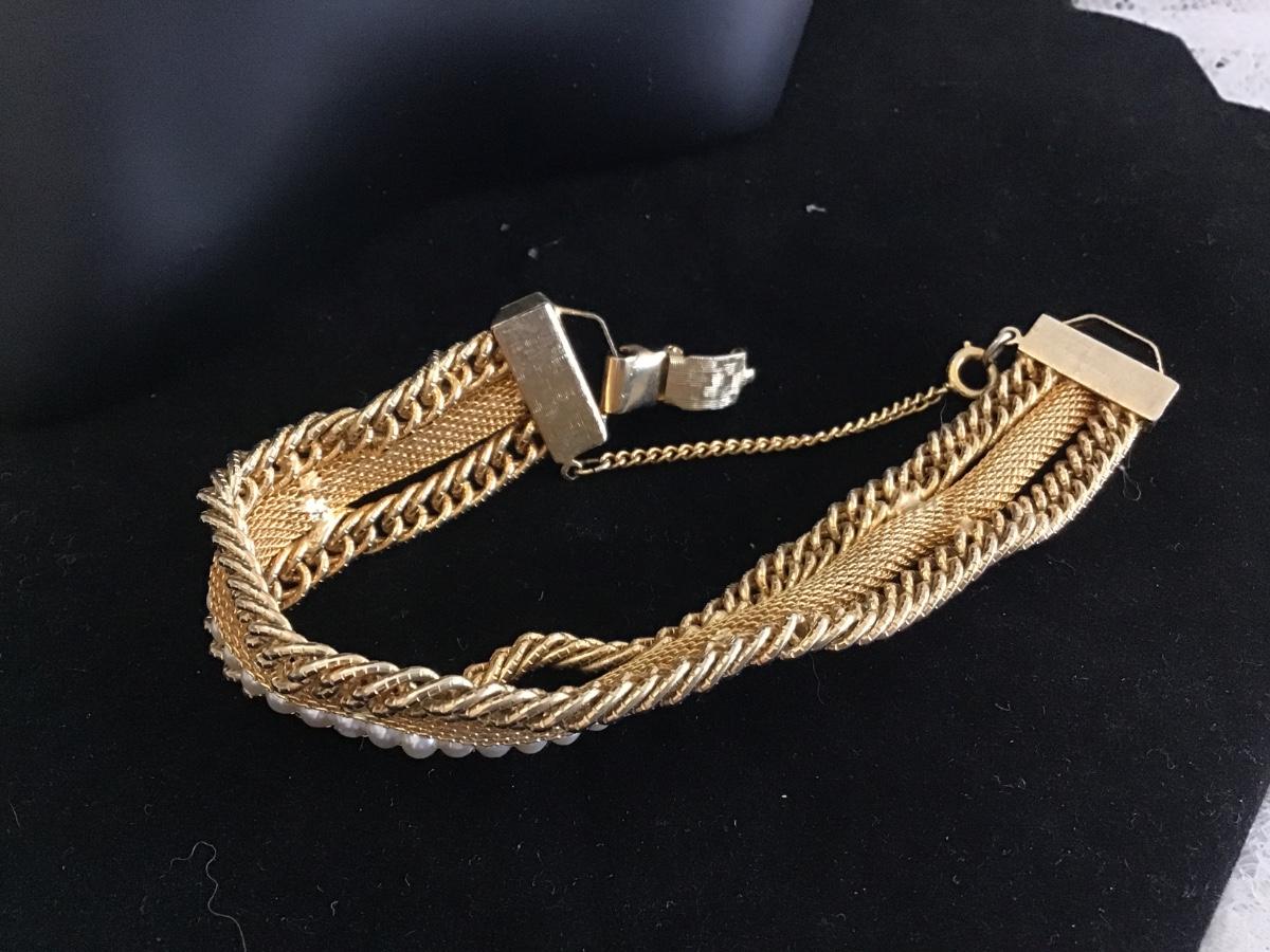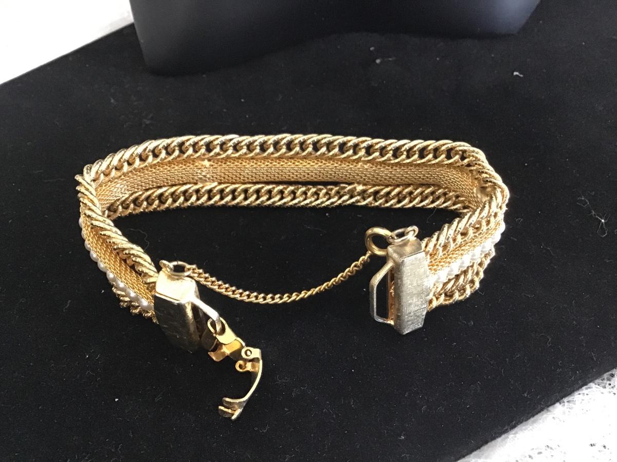 Vintage Gold Mesh And Faux Pearl Bracelet