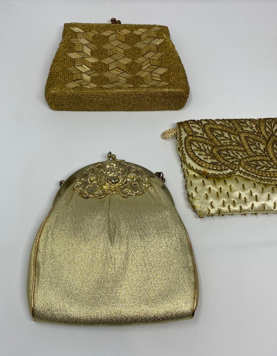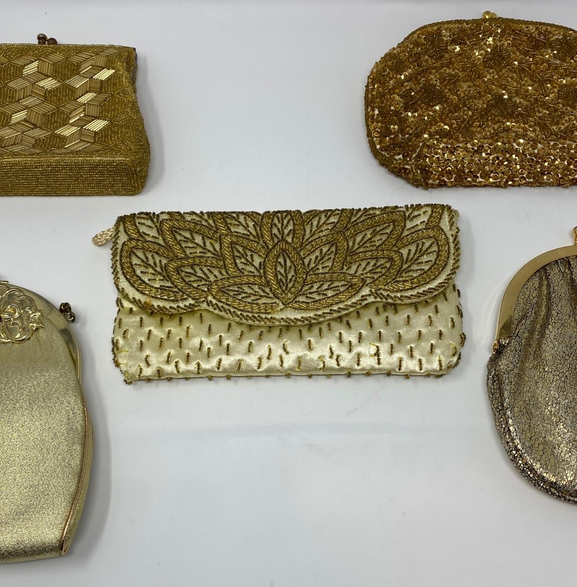 Vintage Gold Micro-Bead and Sequin Clutches
