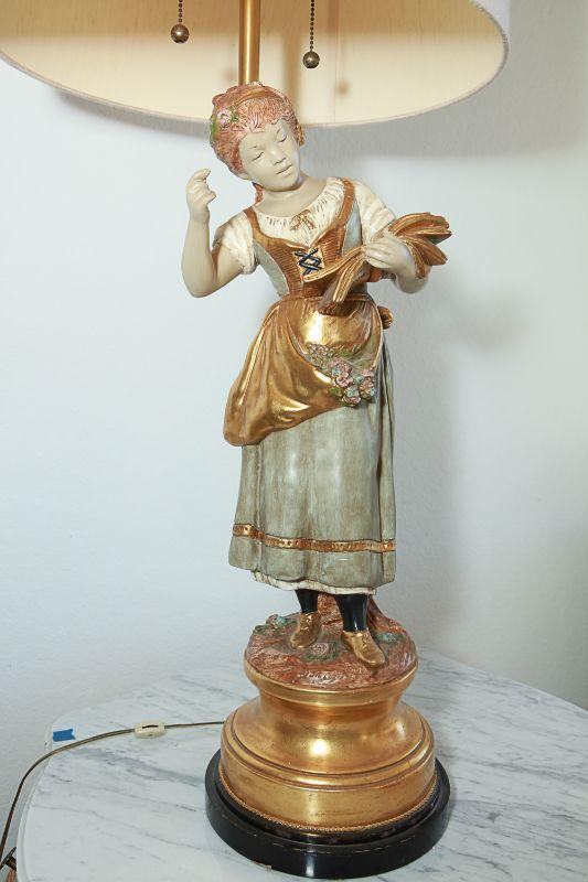 Vintage Gold Moreau Marbro Lamp Co Figural Boy and Girl Pair YD#022-0042