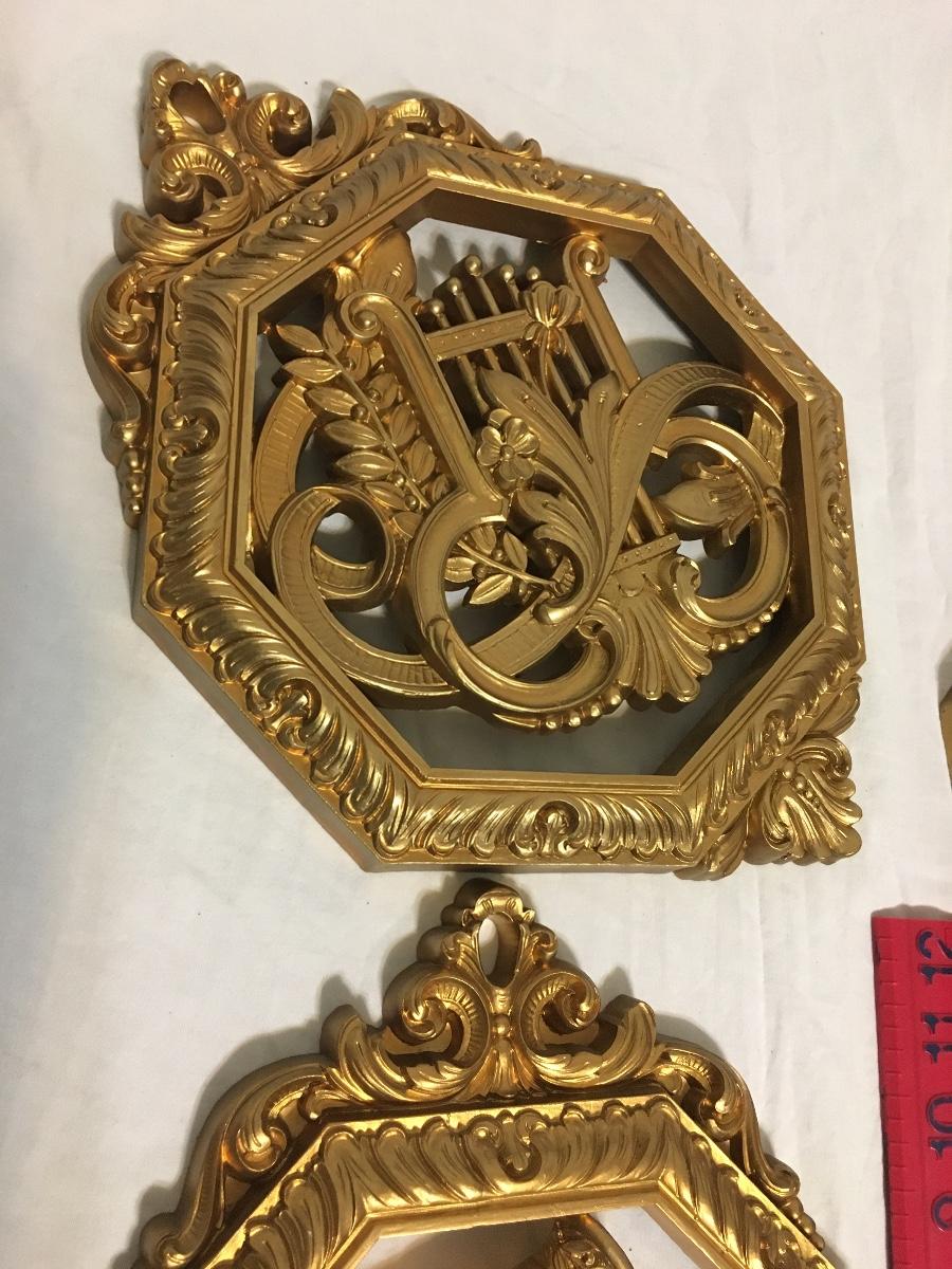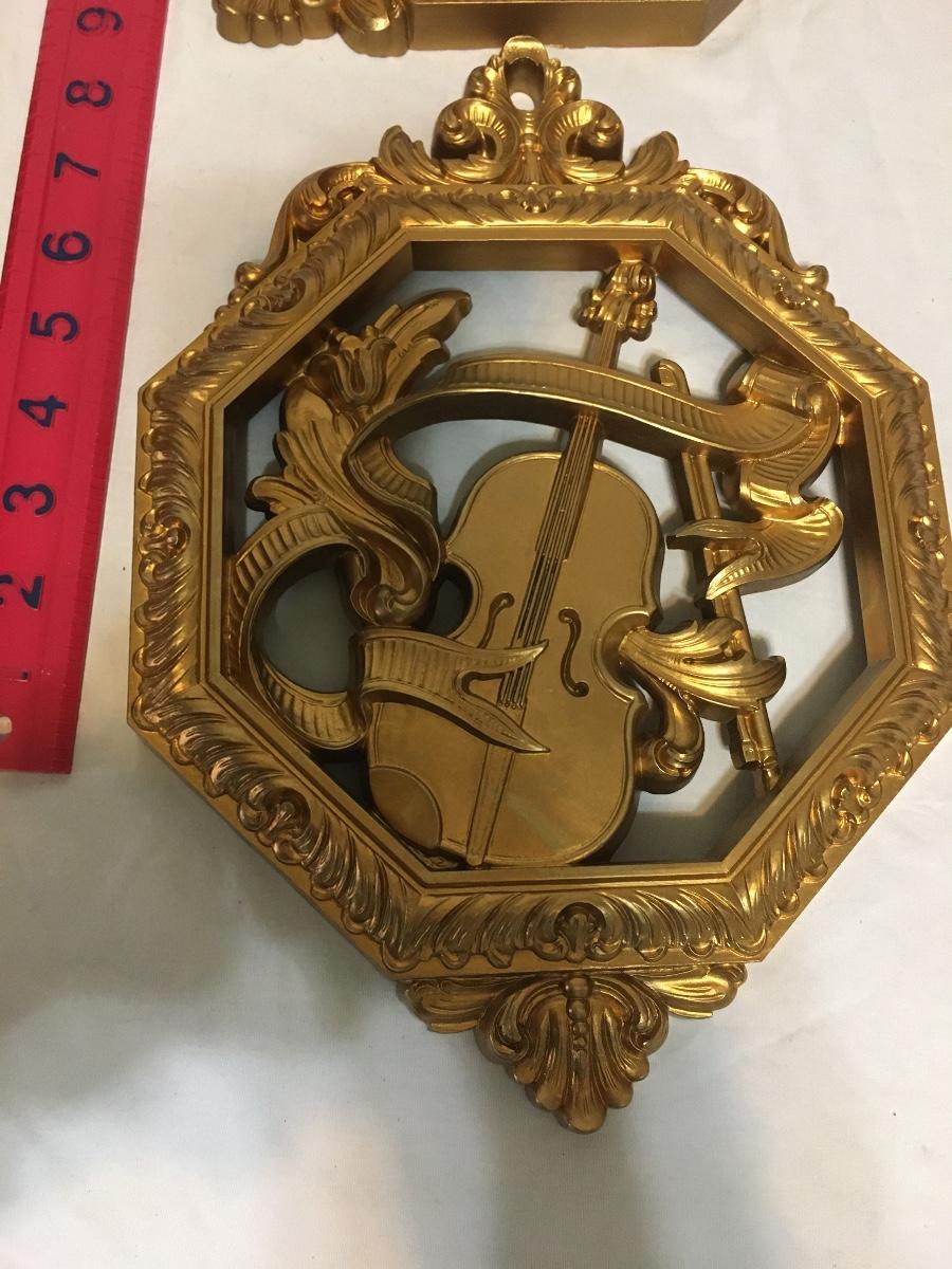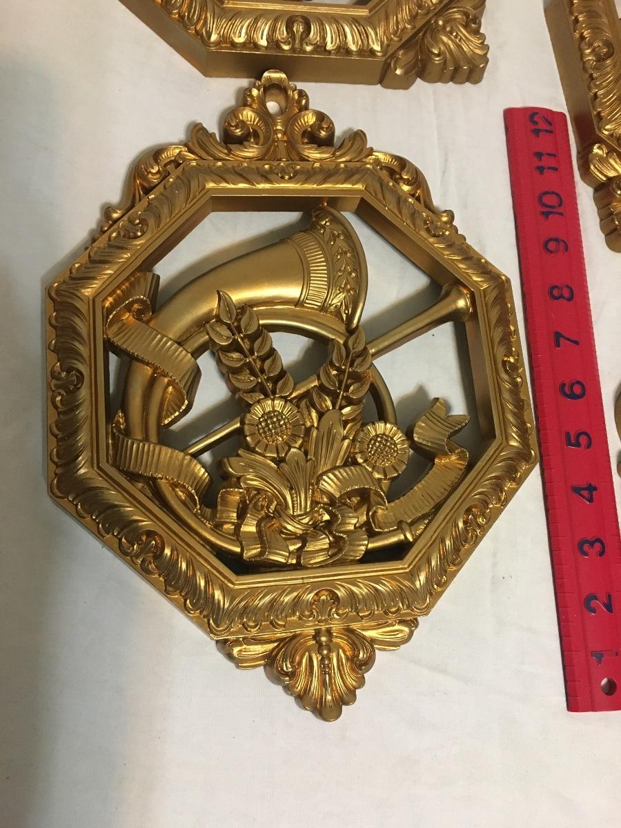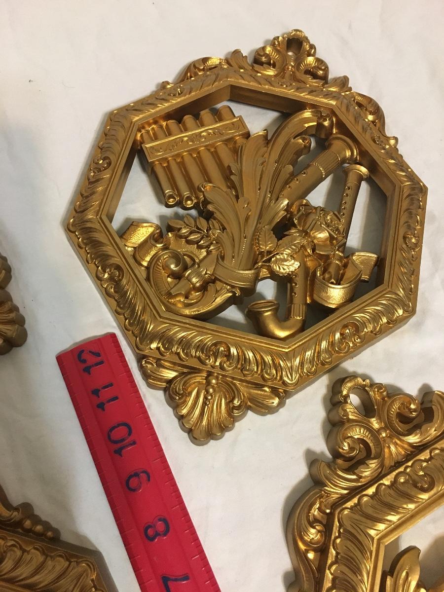 Vintage Gold Music Wall Plaques (4) 1976 Syroco Inc 7402 Instruments Musical Set