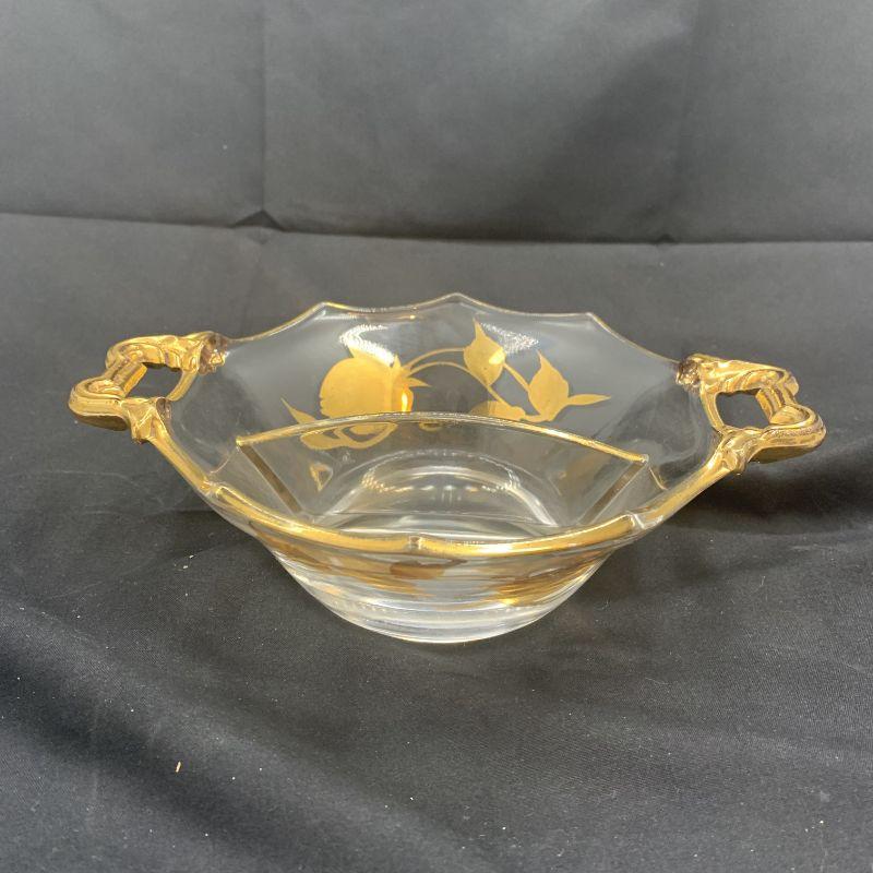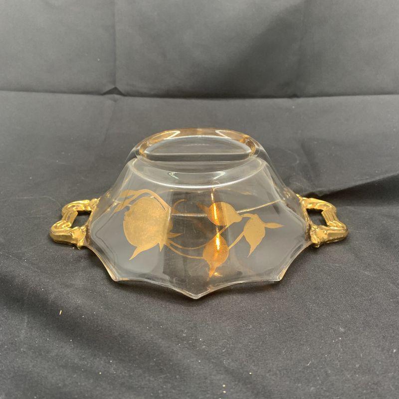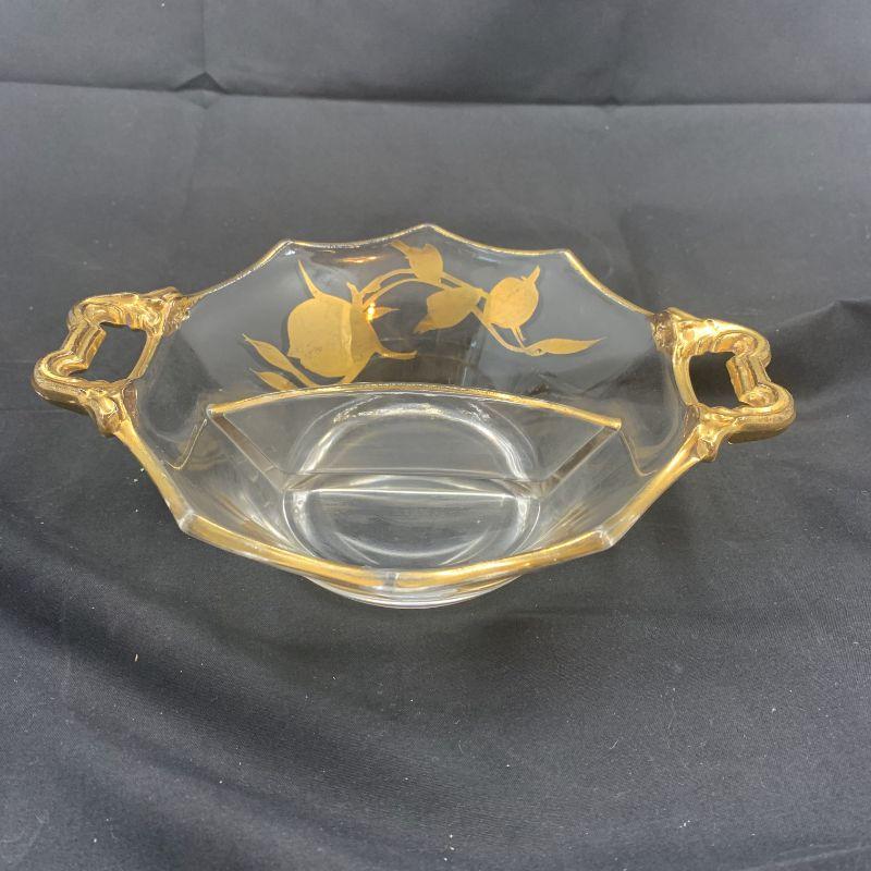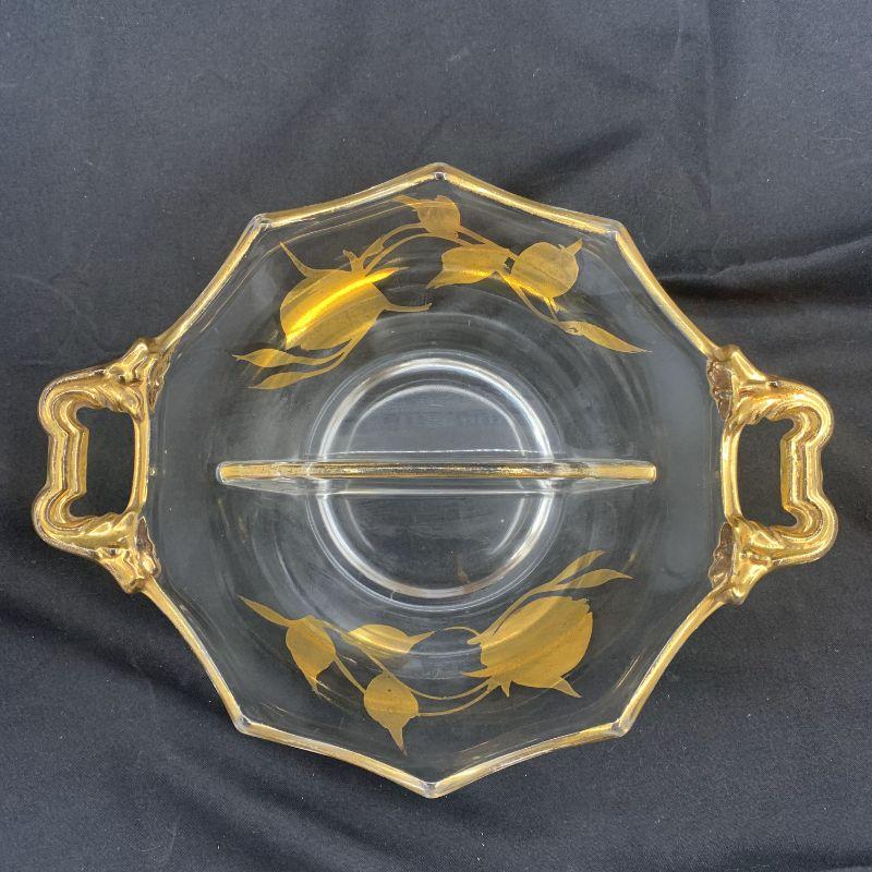 Gold Overlay Floral Glass, 2-part Candy Dish