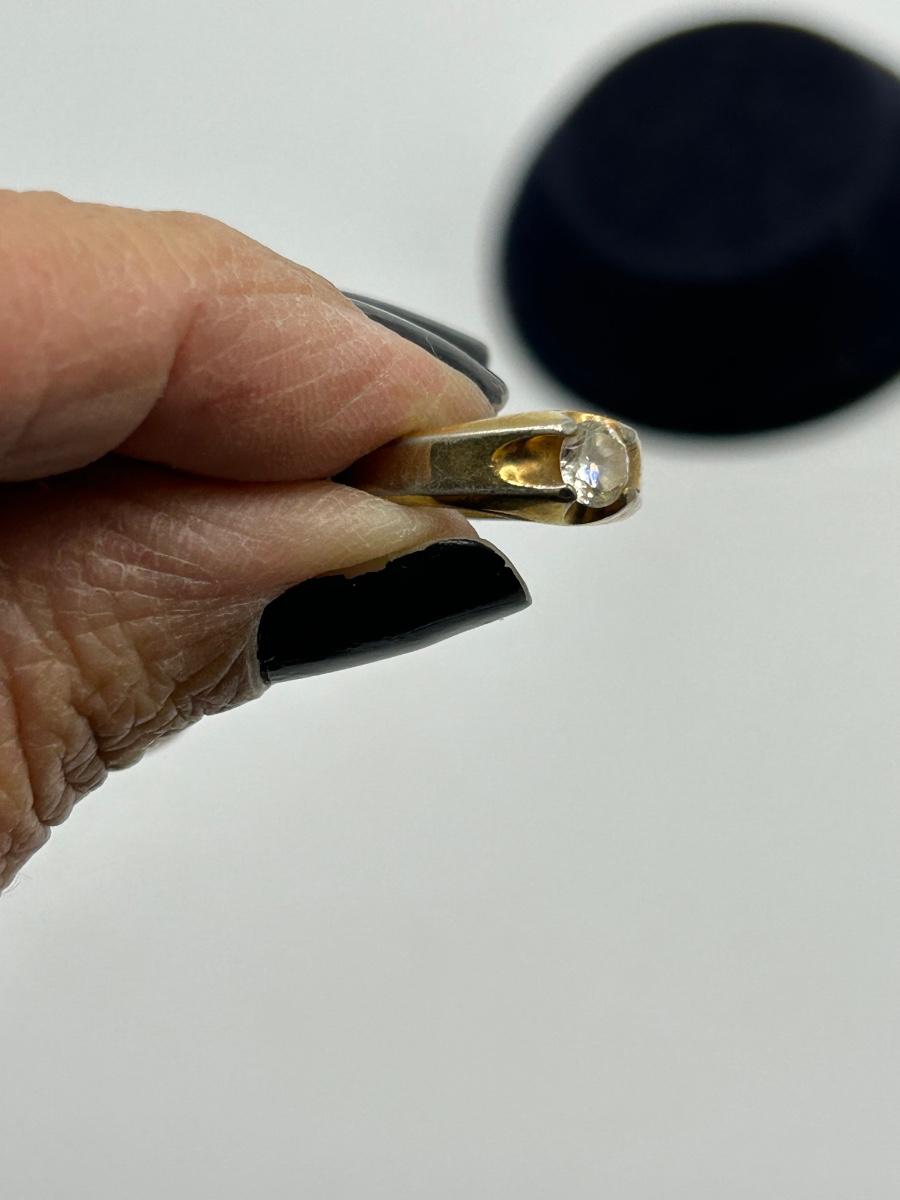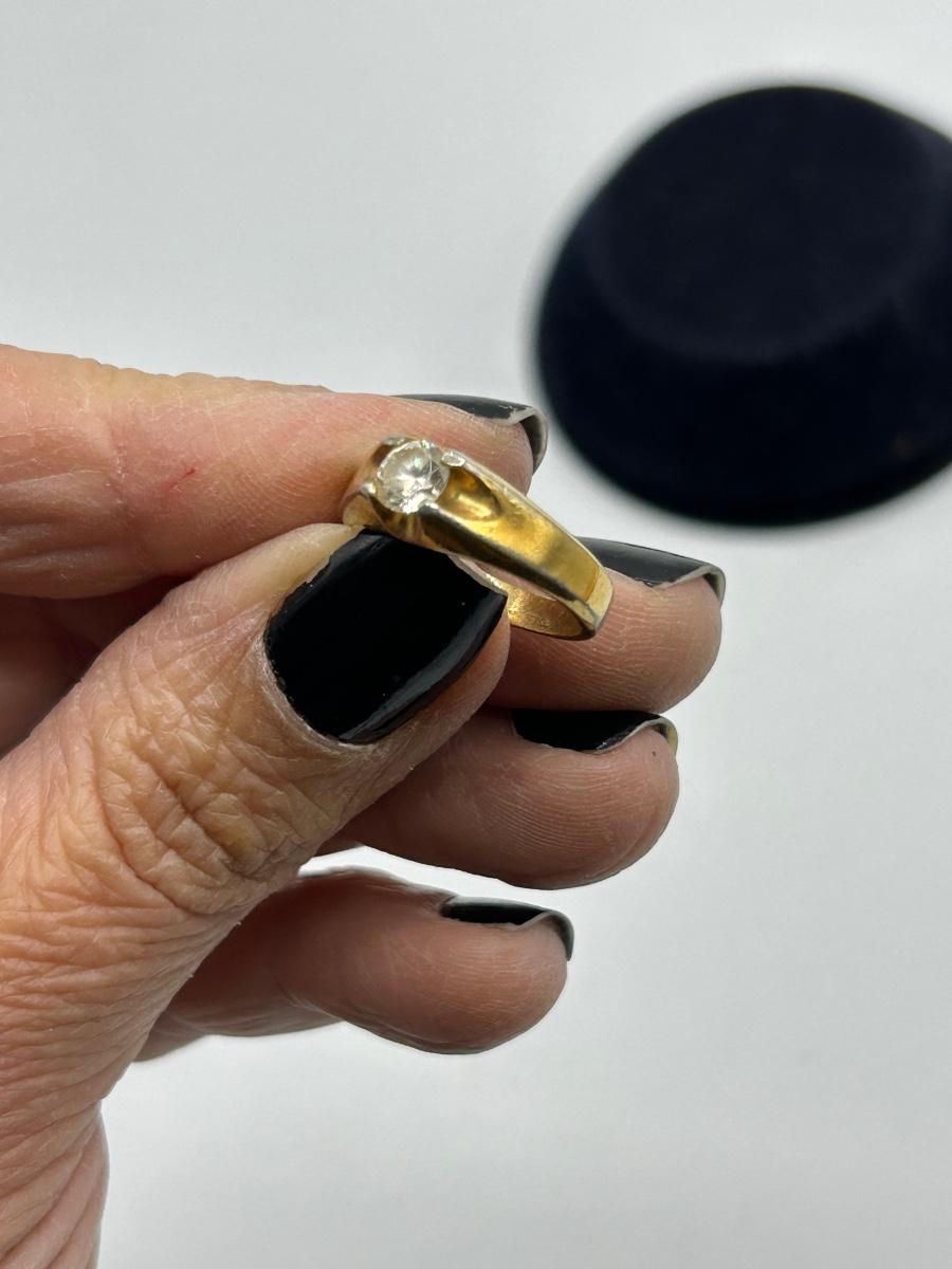 Vintage Gold Plate Solitaire CZ Cubic Zirconia Fashion Jewelry Ring. Electroplated gold. There are signs of wear to the plating, you can see the silver tone metal underneath. About a size 6.