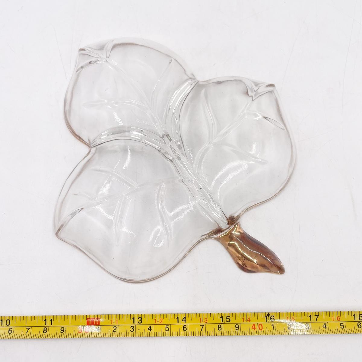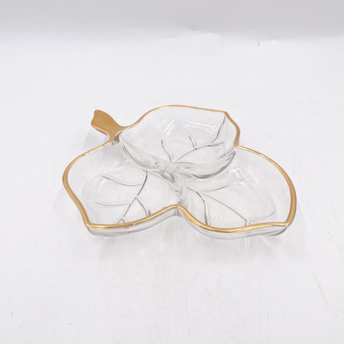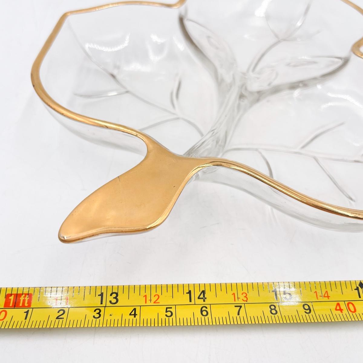 VINTAGE GOLD RIMMED GLASS DIVIDED LEAF TRAY