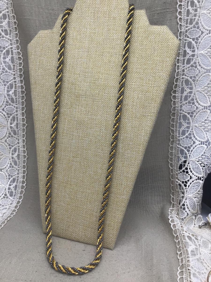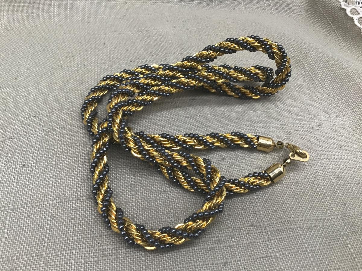 Vintage Gold Rope Necklace With Glass Beaded Accent