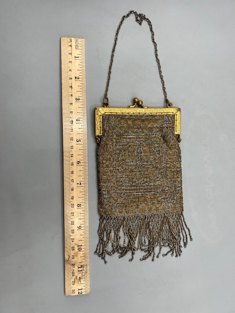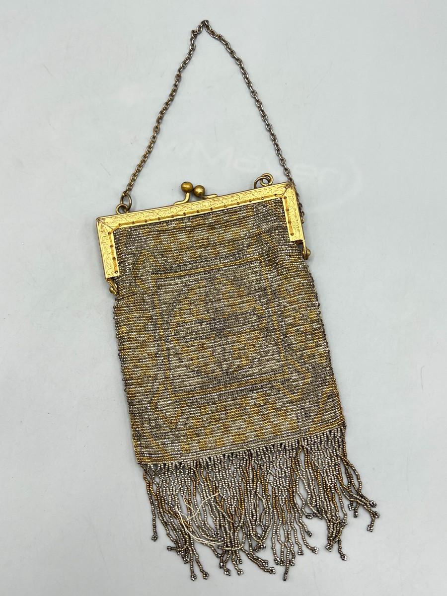 Vintage Gold & Silver Beaded Tassels Hollywood Regency Flapper Fashionable Handbag Purse