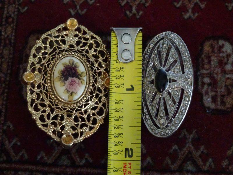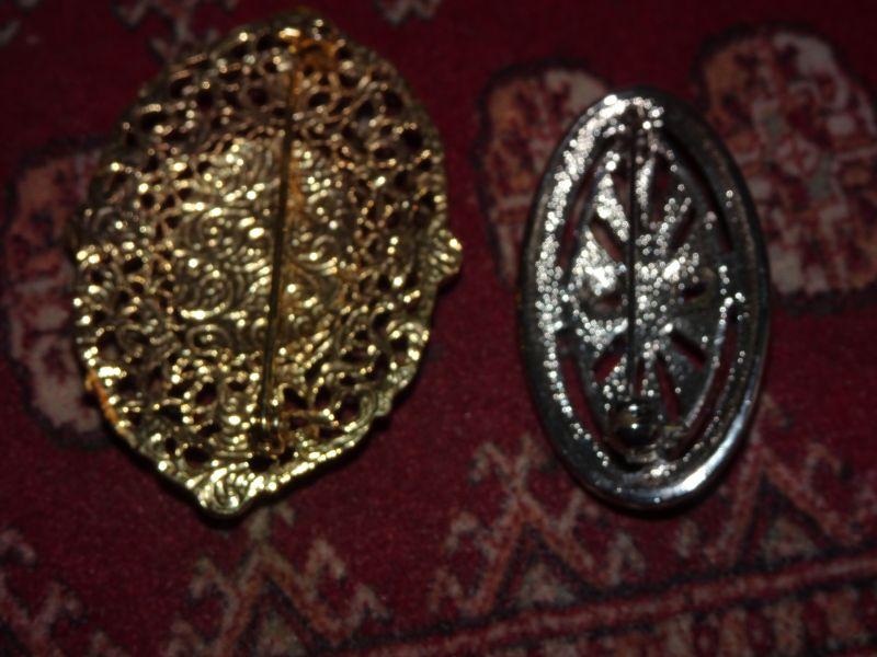 Vintage Gold & Silver Tone Cameo Brooches (2)