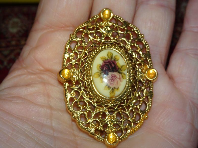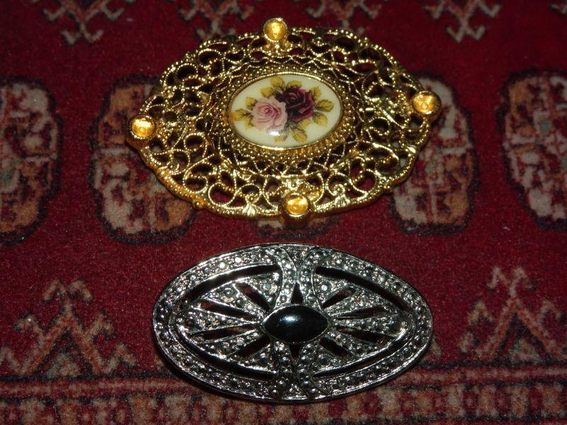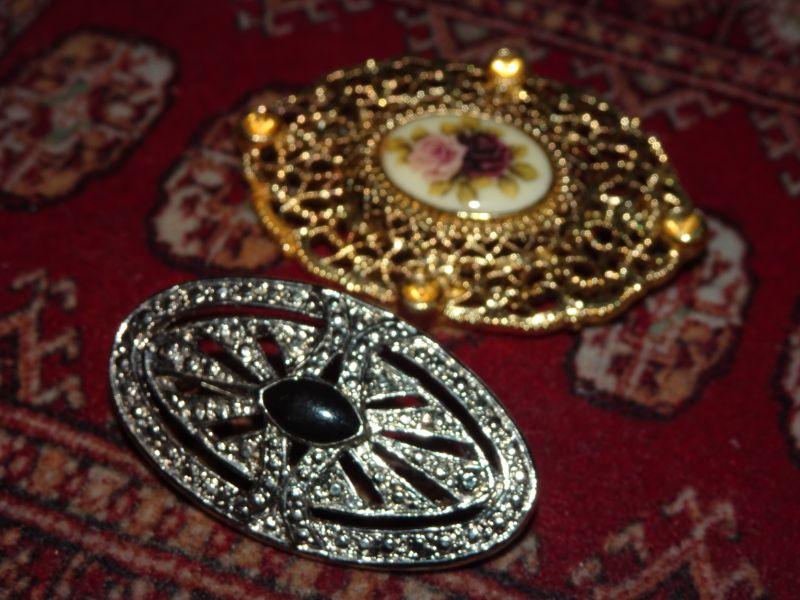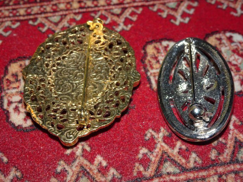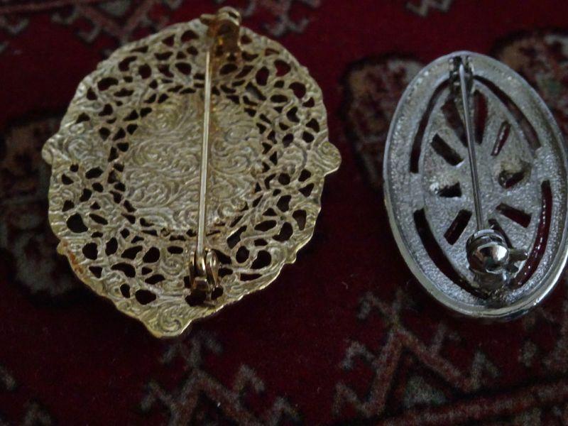 Vintage Gold & Silver Tone Cameo Brooches (2)