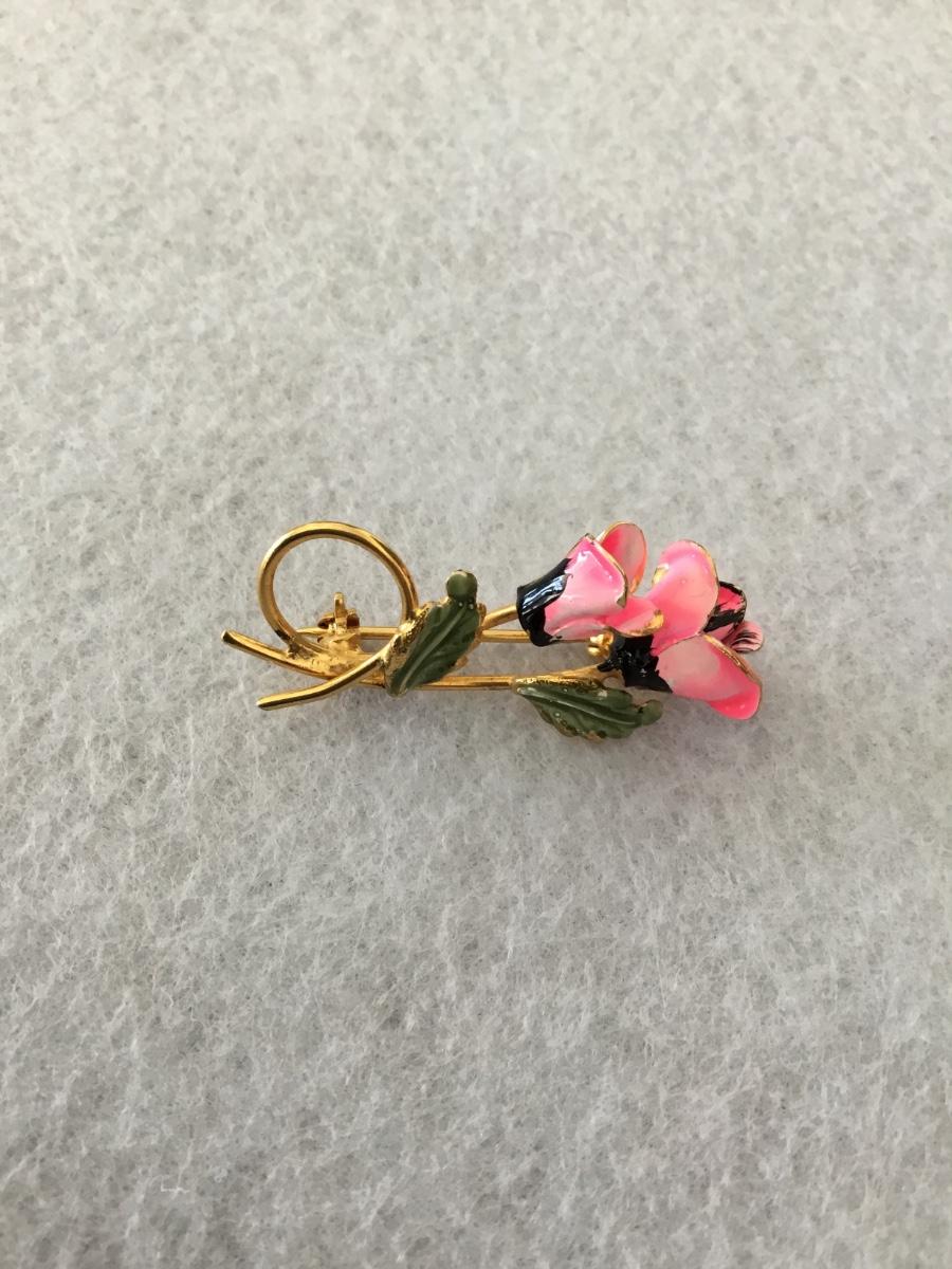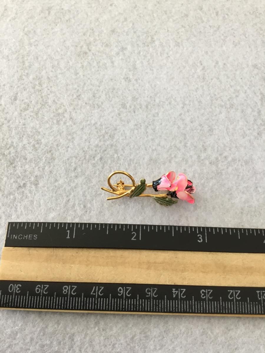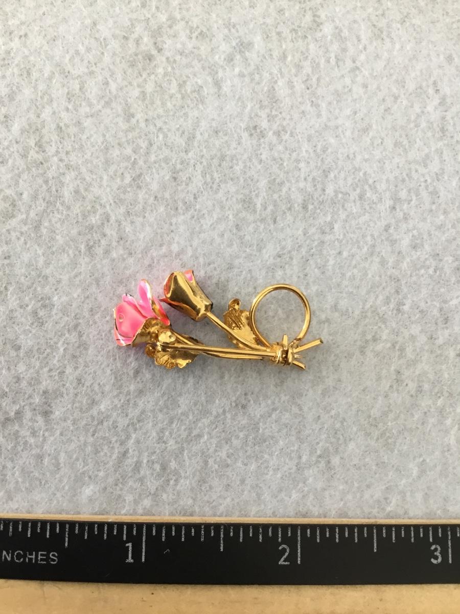 Vintage gold tone and a hot pink enamel rose pin