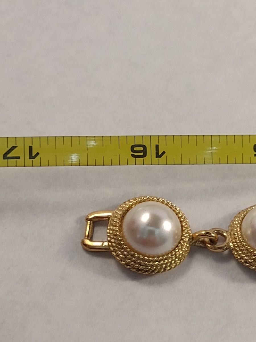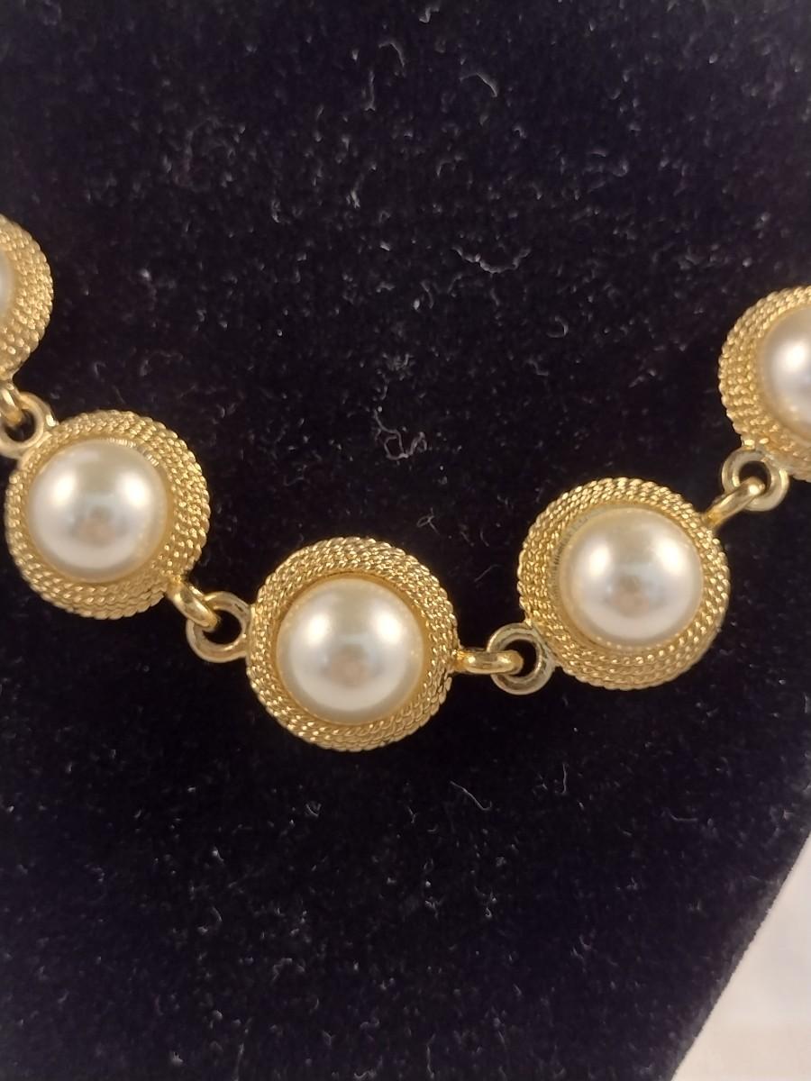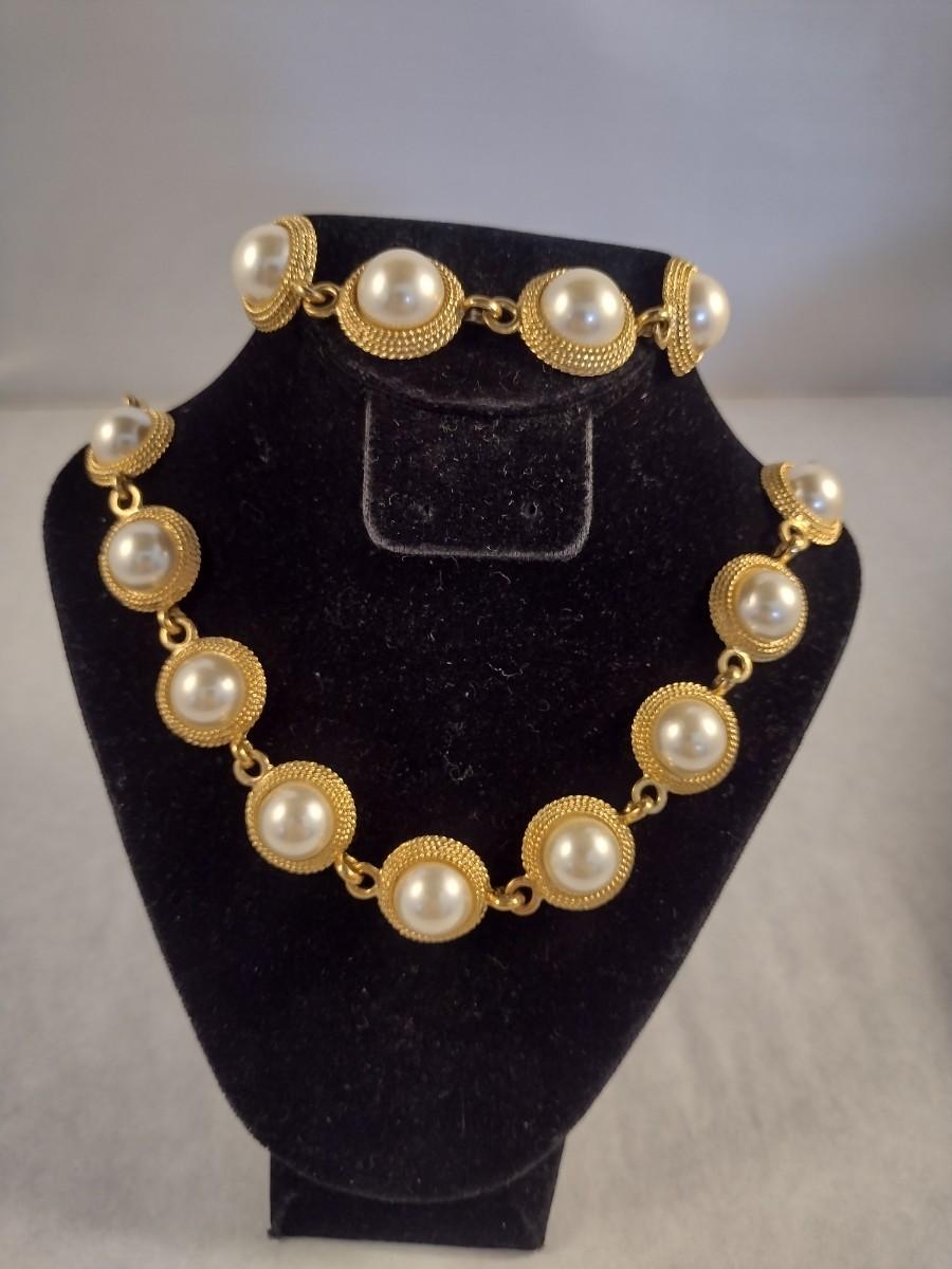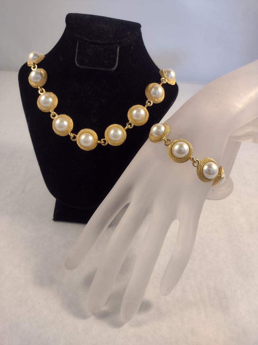 Vintage Napier Gold Tone and Faux Pearl Matching Bracelet and Necklace Set (#13)