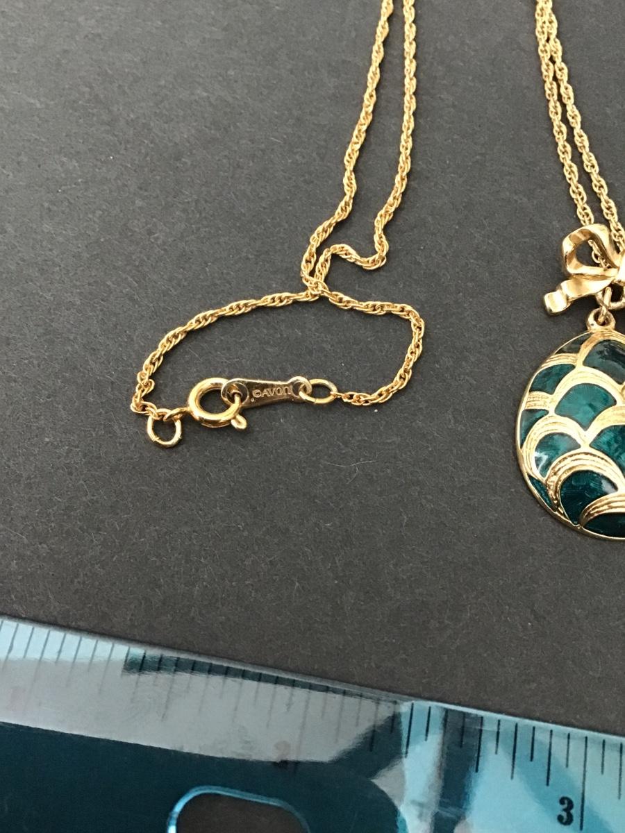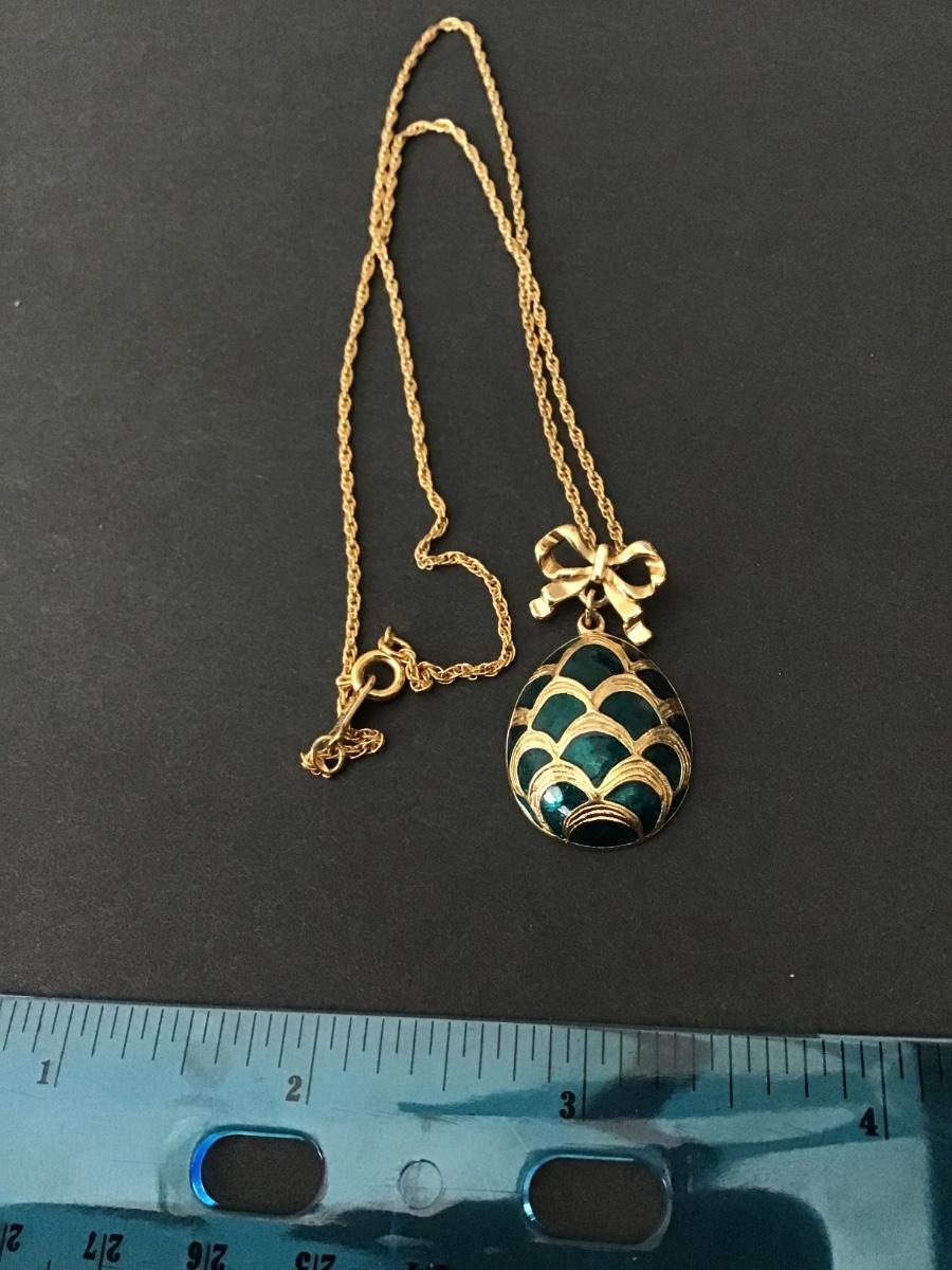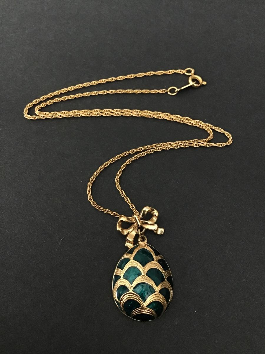 Vintage, gold tone, Avon enamel egg pendant, necklace