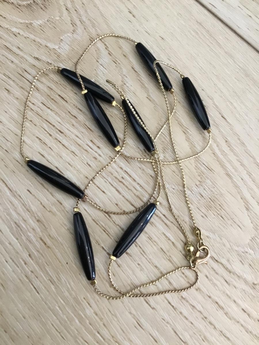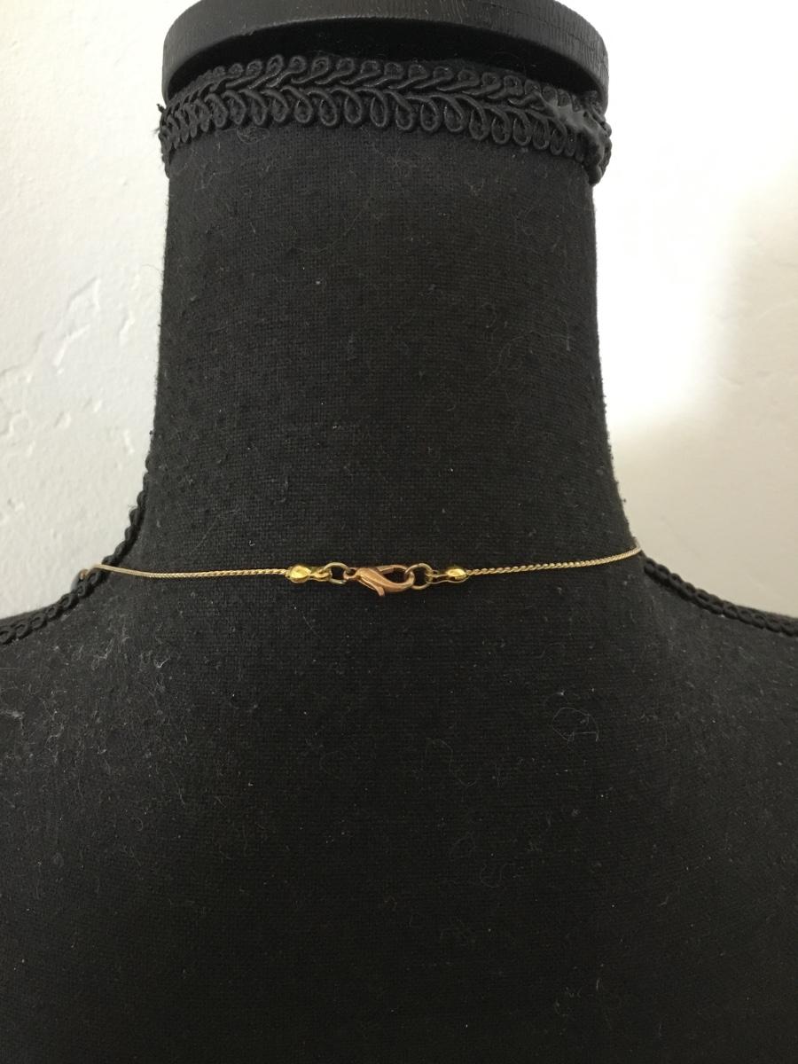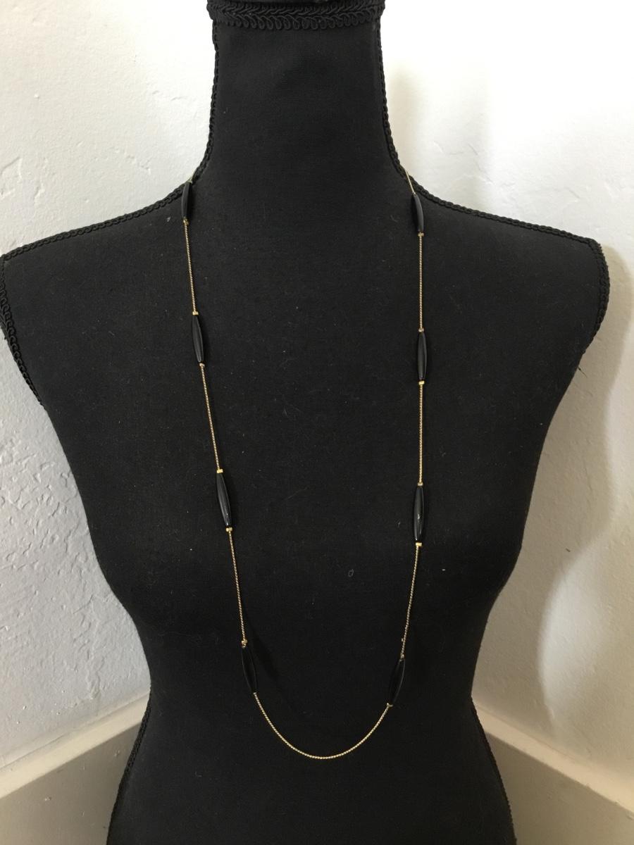 Vintage gold tone, black tube, bead, dainty necklace