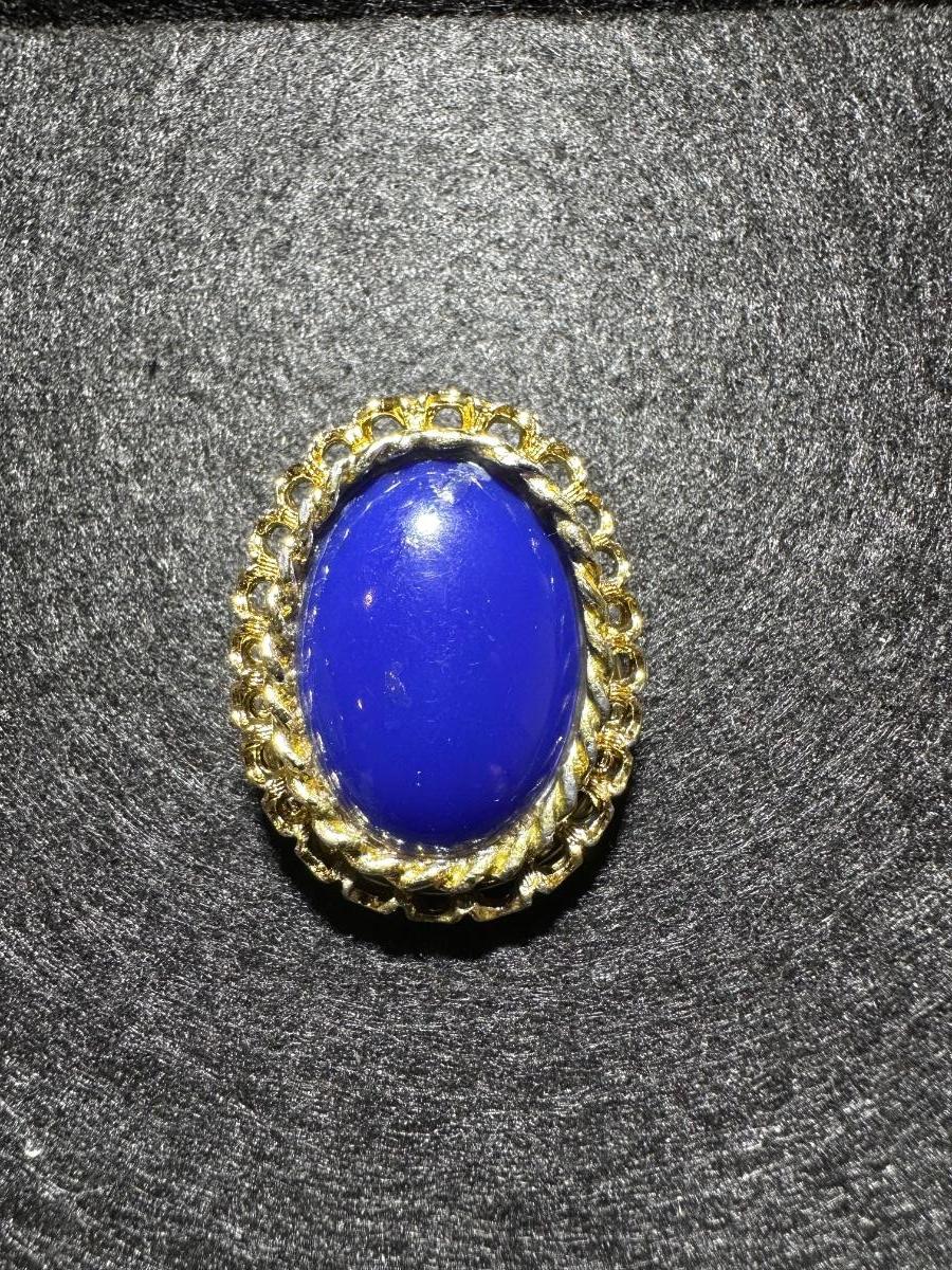 Vintage Gold tone blue center scarf clip