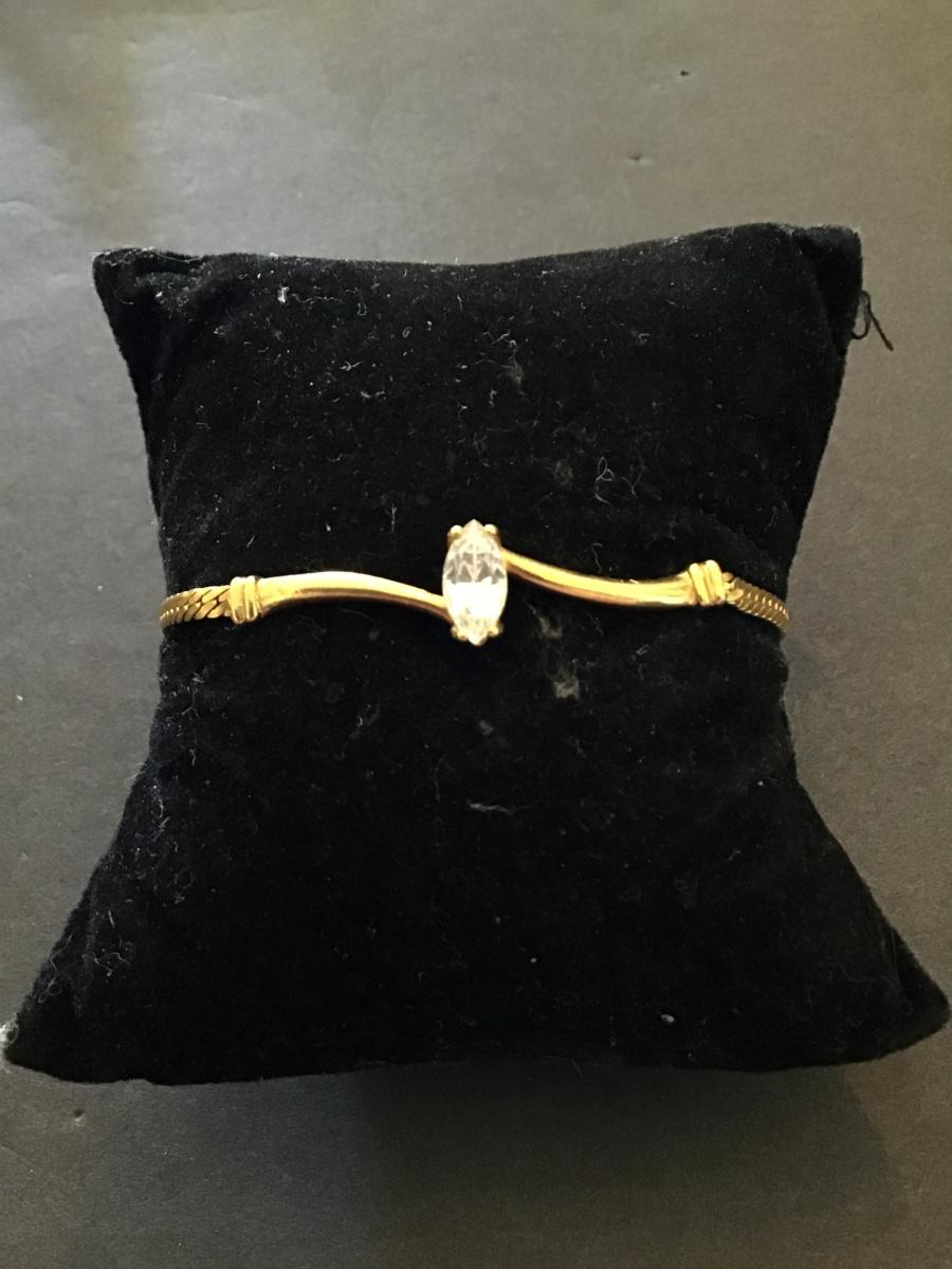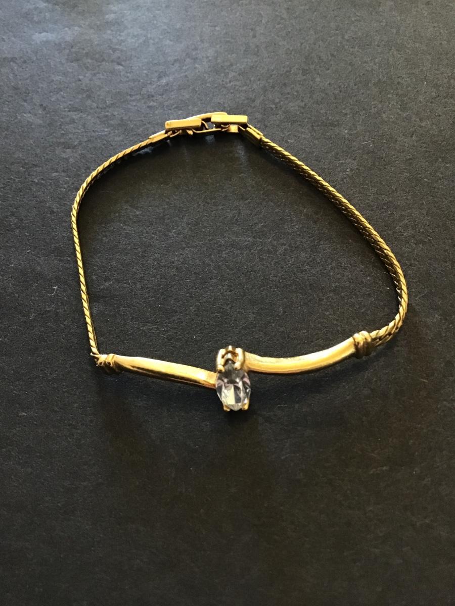 Vintage gold tone bracelet with clear rhinestone