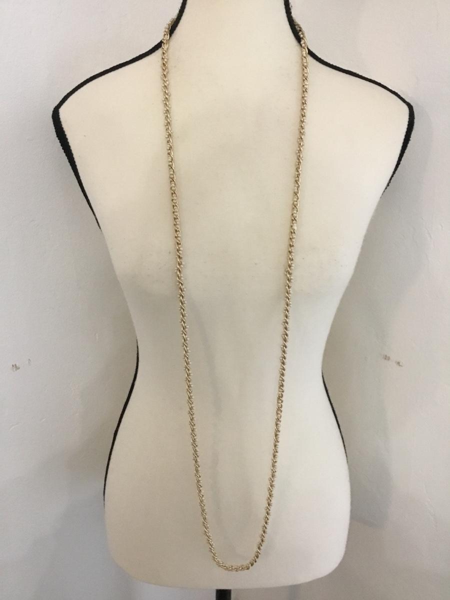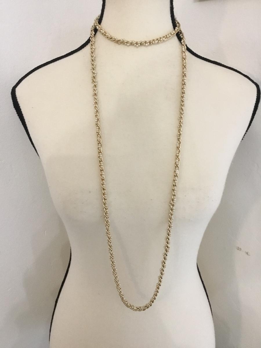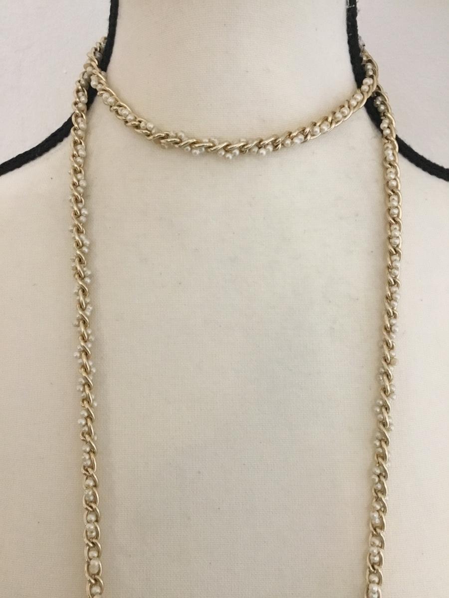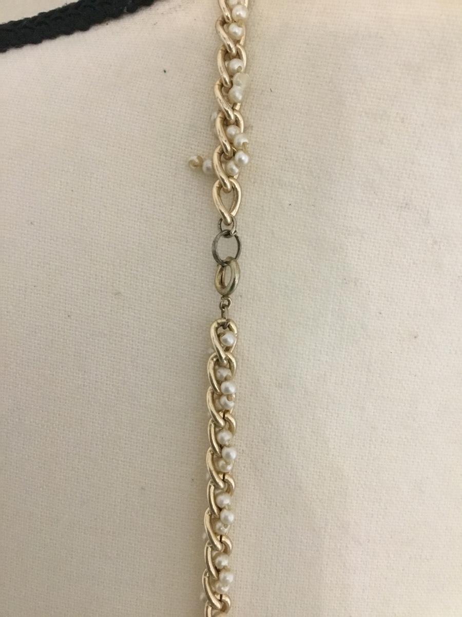 Vintage gold tone chain & faux pearl bead flapper style necklace