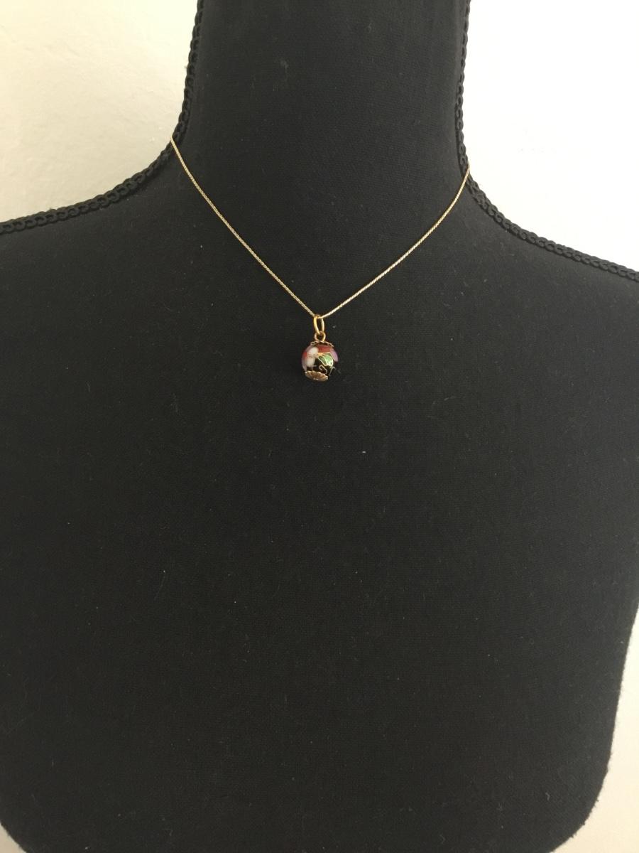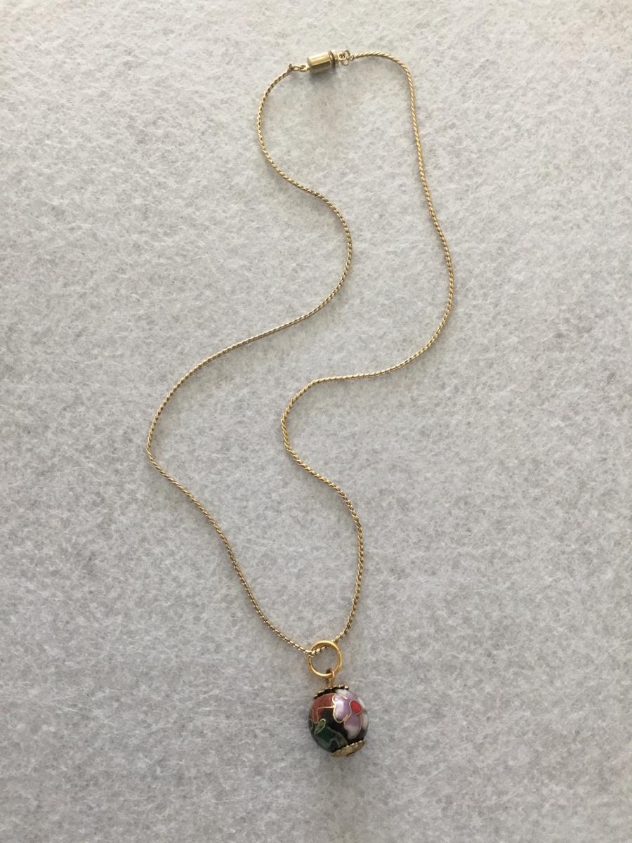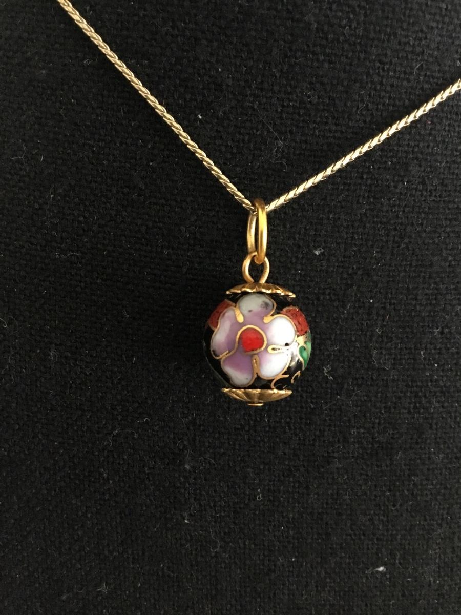 Vintage gold tone chain necklace & Cloisonné Pendant Chinese enamel floral bead