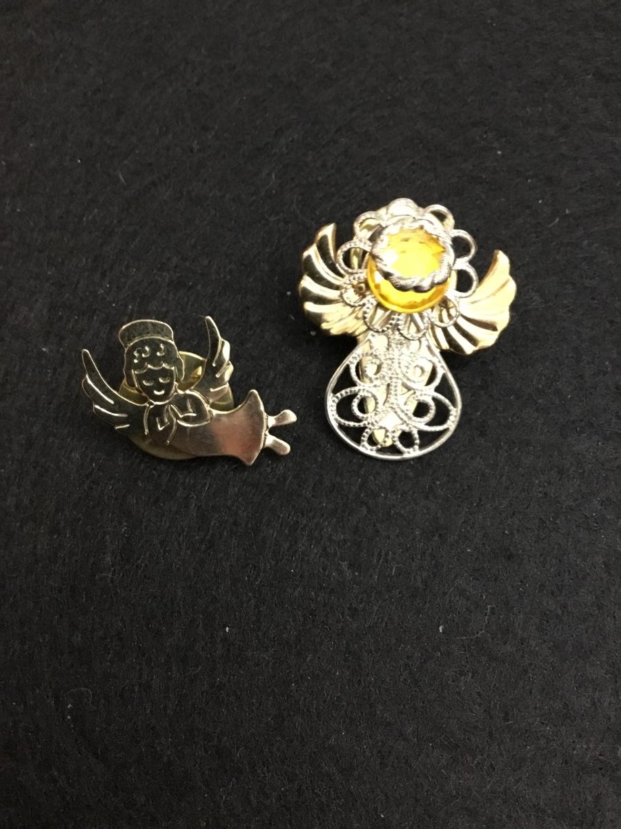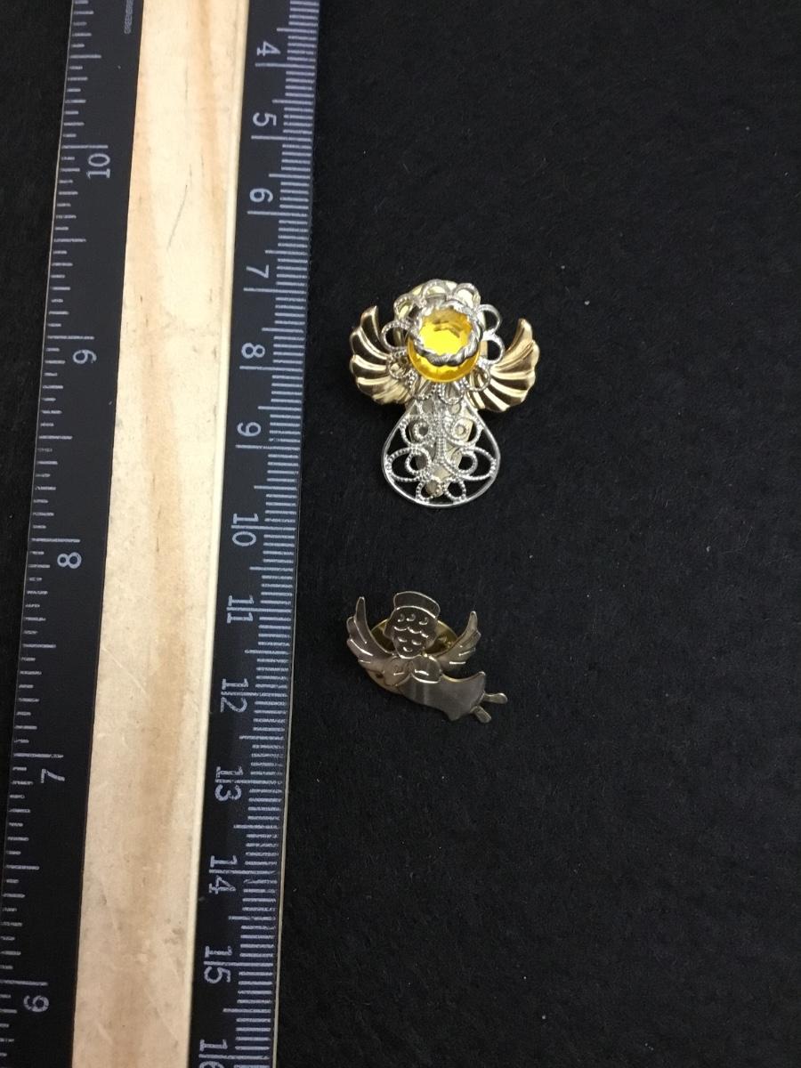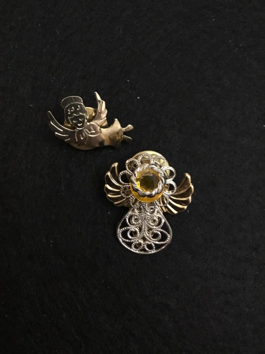 Vintage gold tone Christmas angels pin