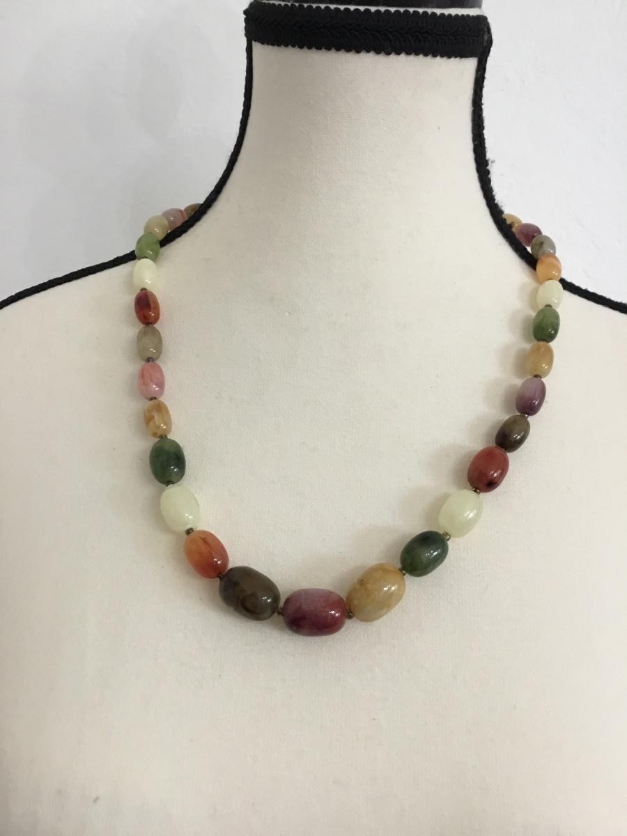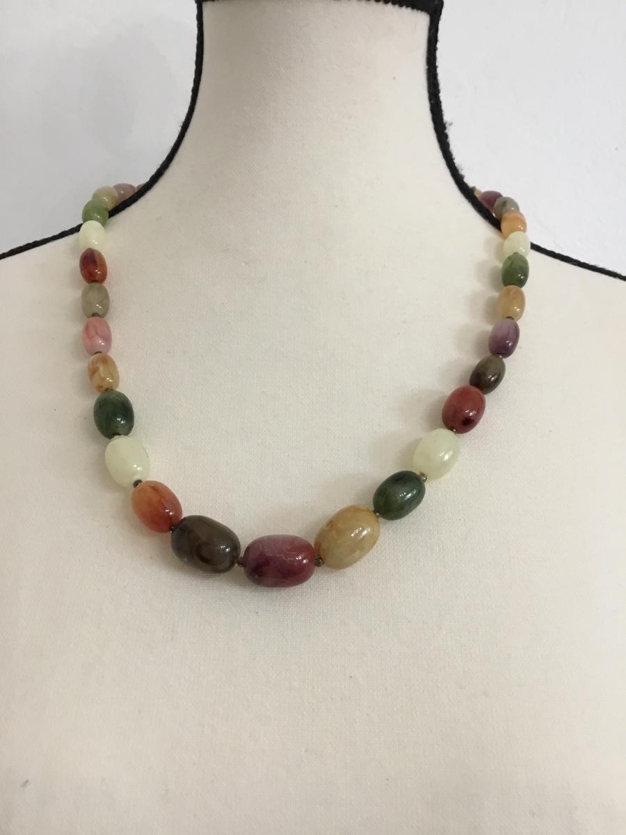Vintage gold tone colorful beaded fashion necklace