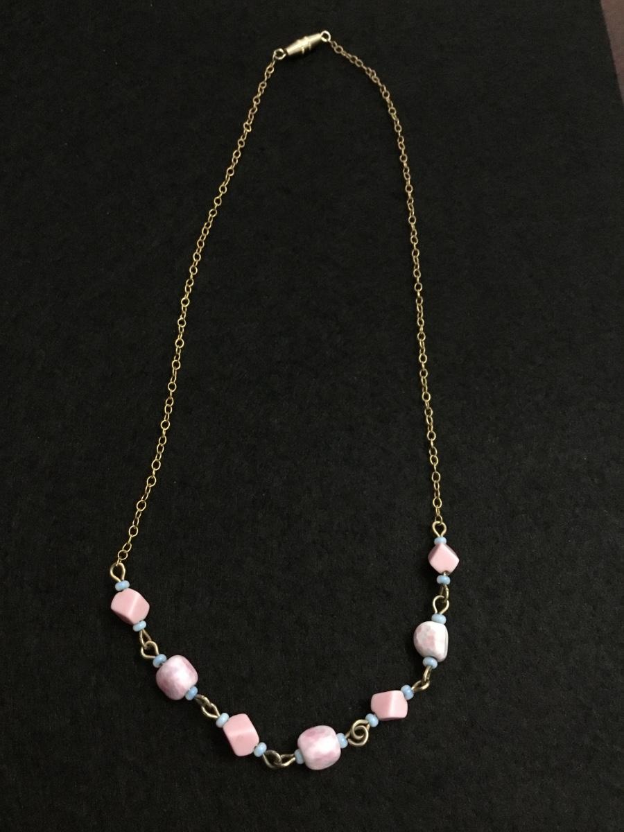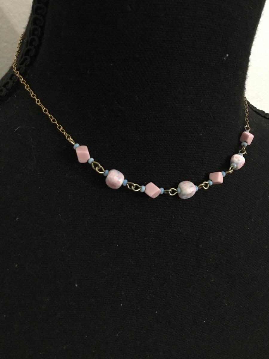 Vintage gold tone cotton candy, pink and blue stone choker style necklace with barrel clasp