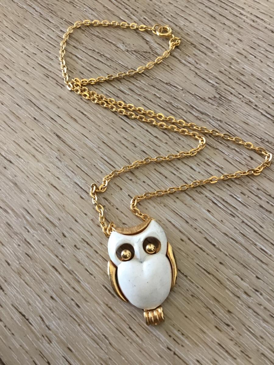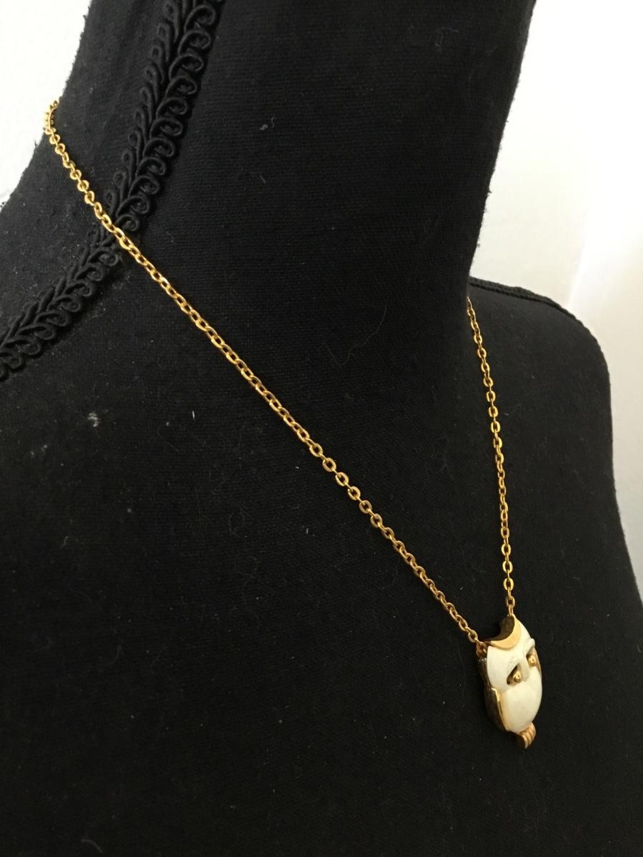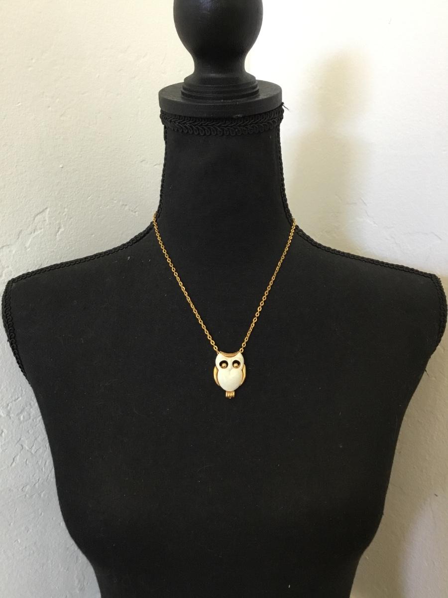 Vintage, gold tone, cream, white, Lucite, owl, pendant necklace vintage JJ