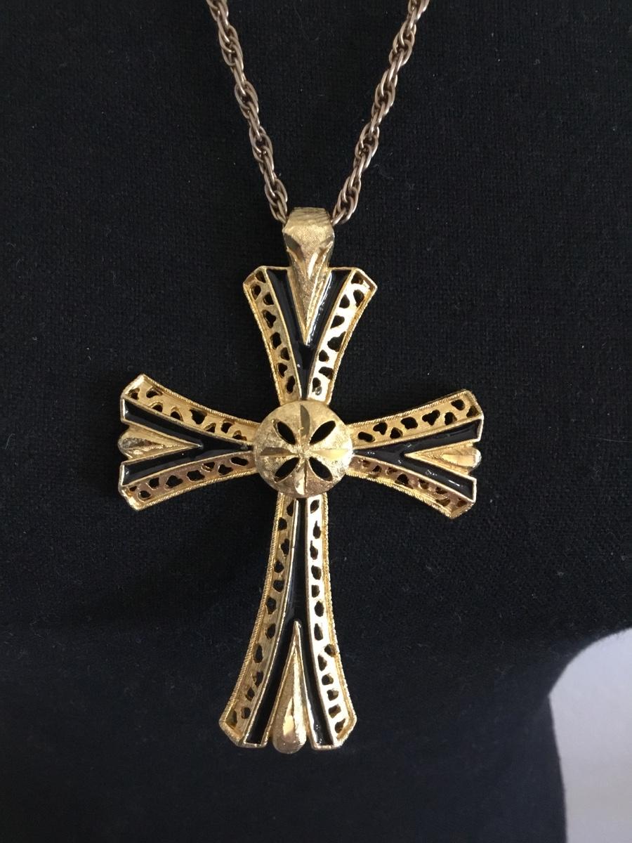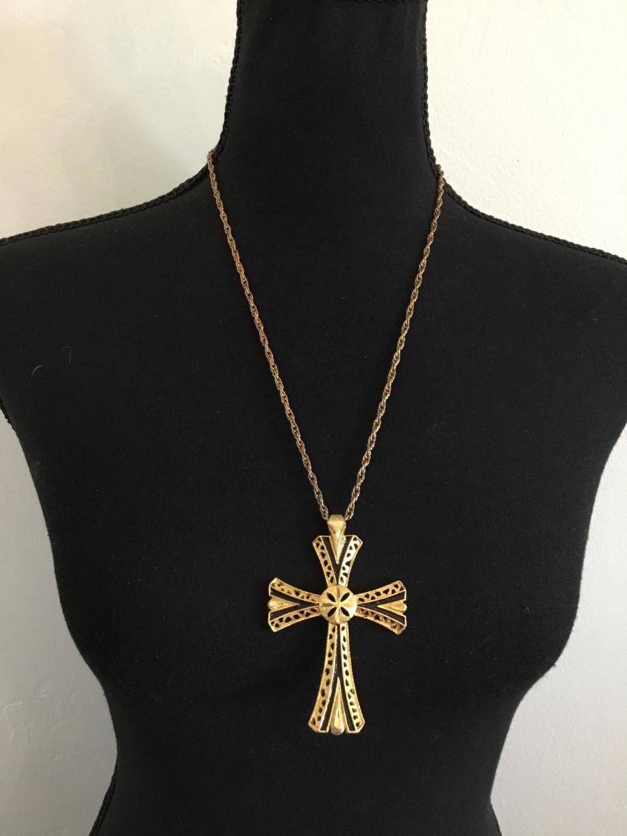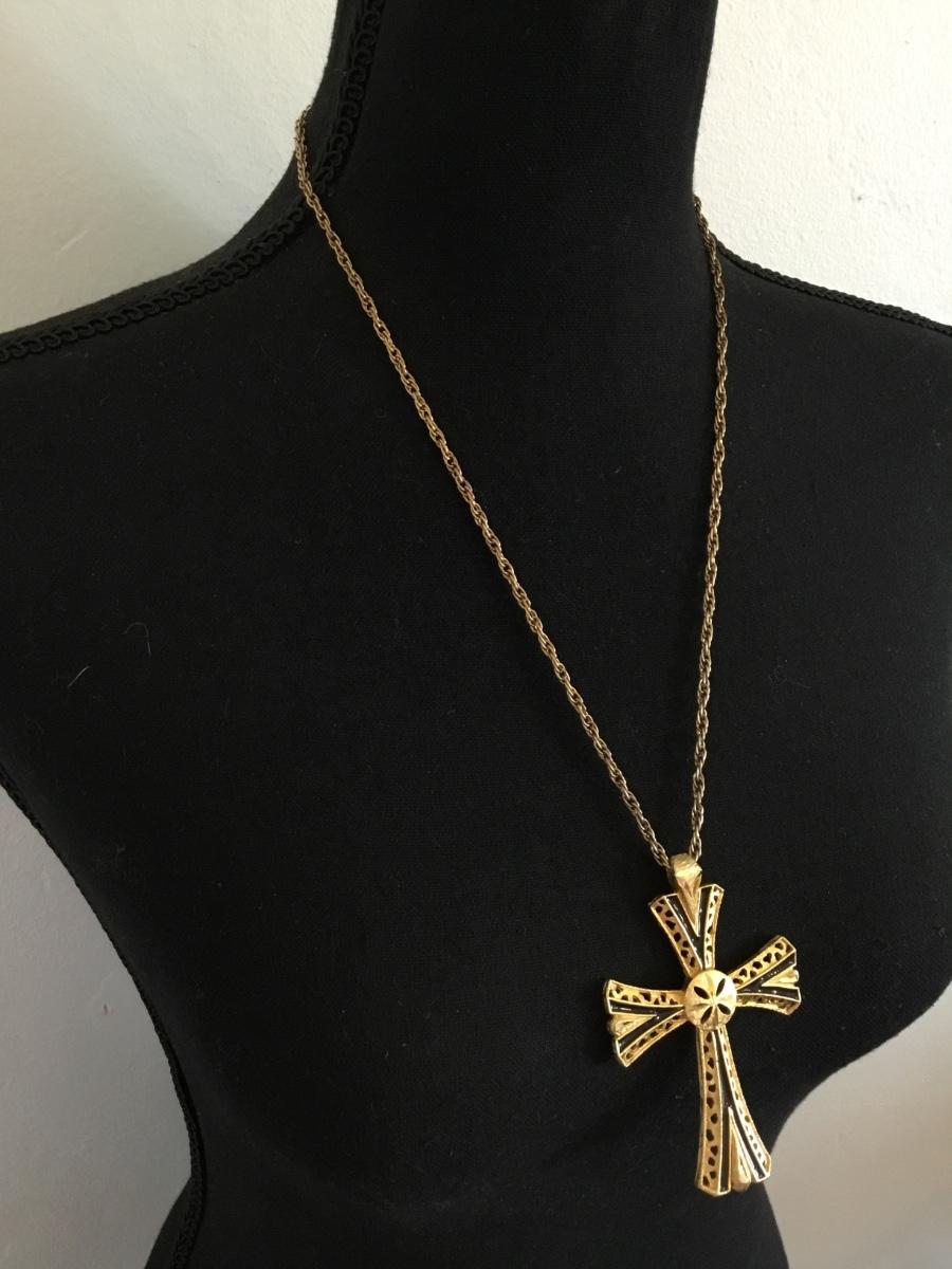 Vintage Gold tone cross pendant & chain necklace