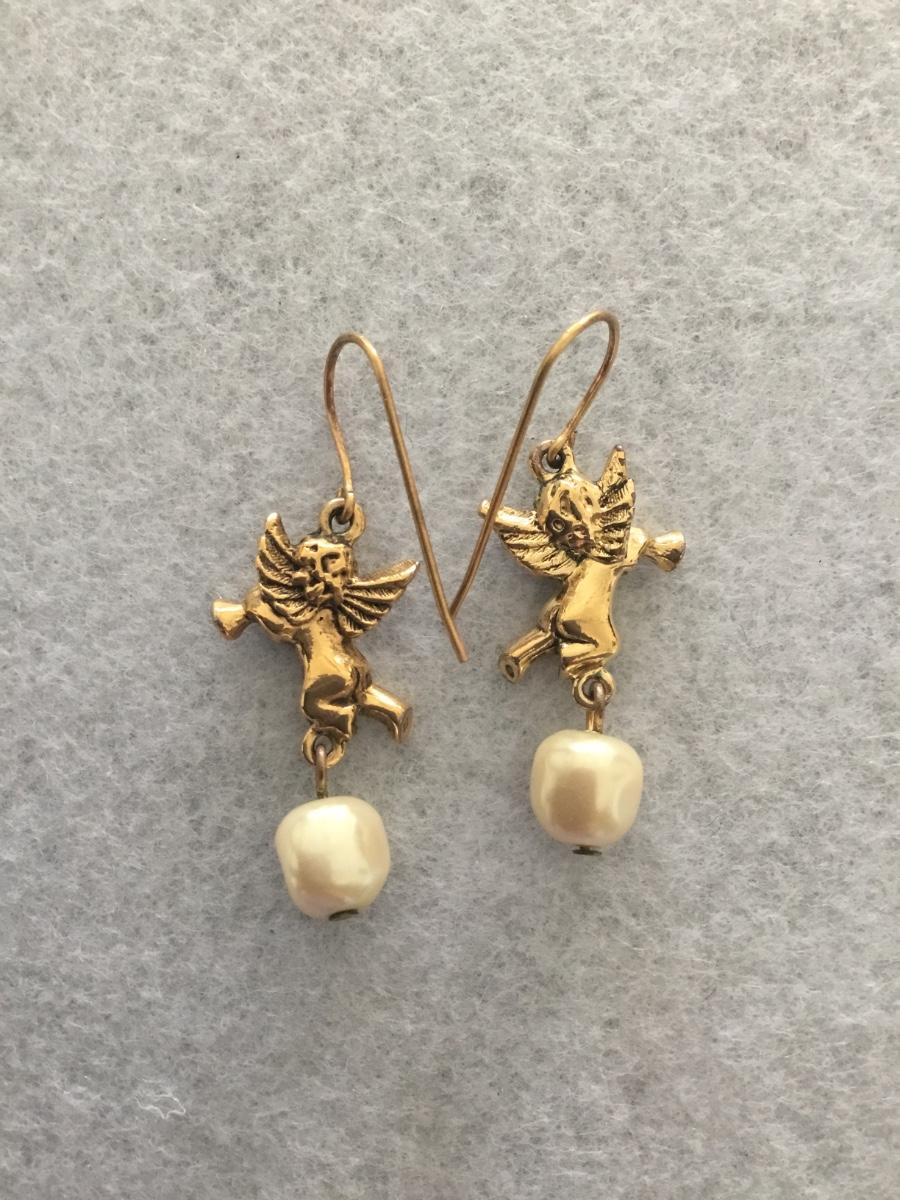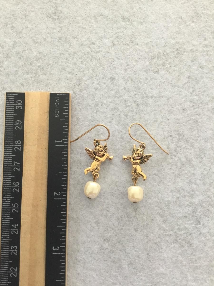 Vintage gold tone , Cupid dangle earrings
