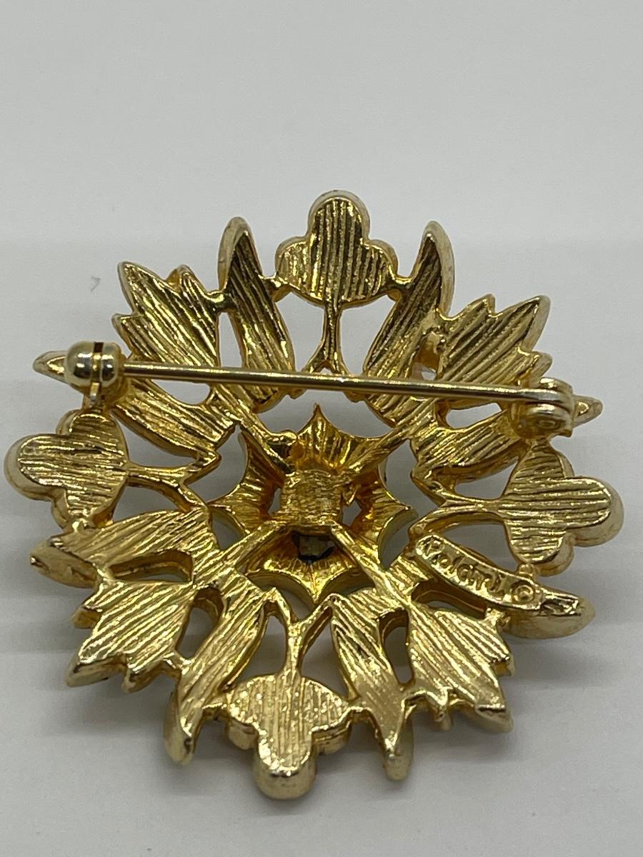 Vintage Gold Tone Enameled Medallion Pin Brooch Polcini