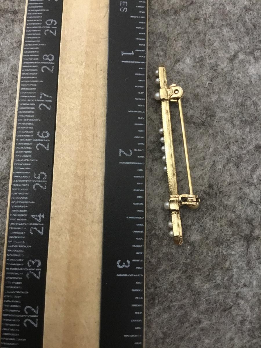 Vintage Gold tone faux pearl bar brooch