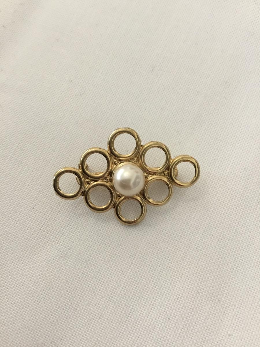 Vintage, gold tone, faux, pearl honeycomb brooch