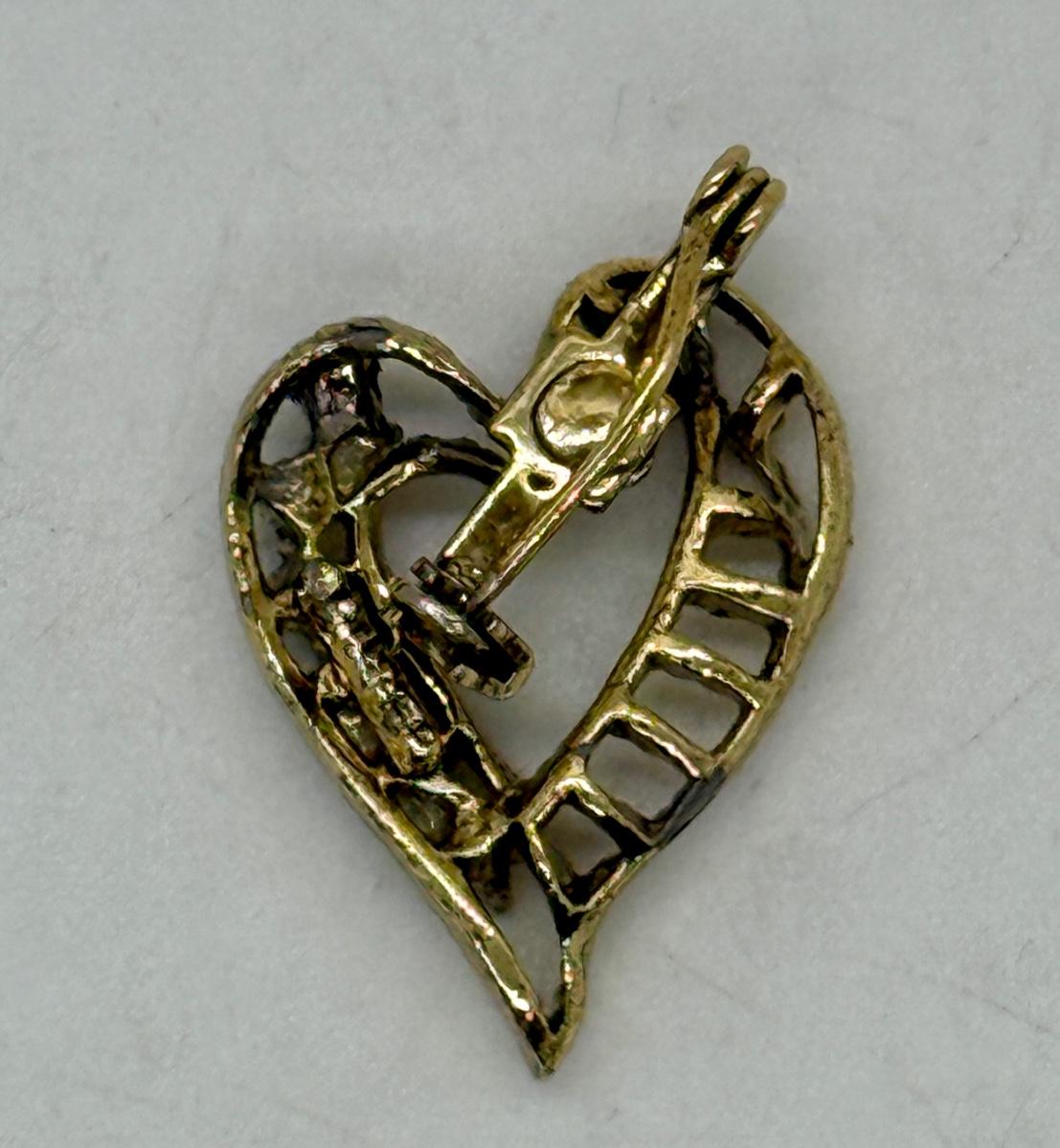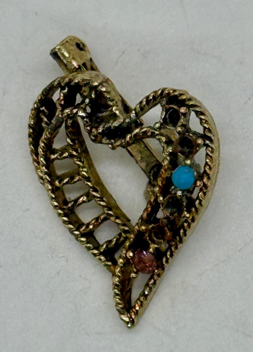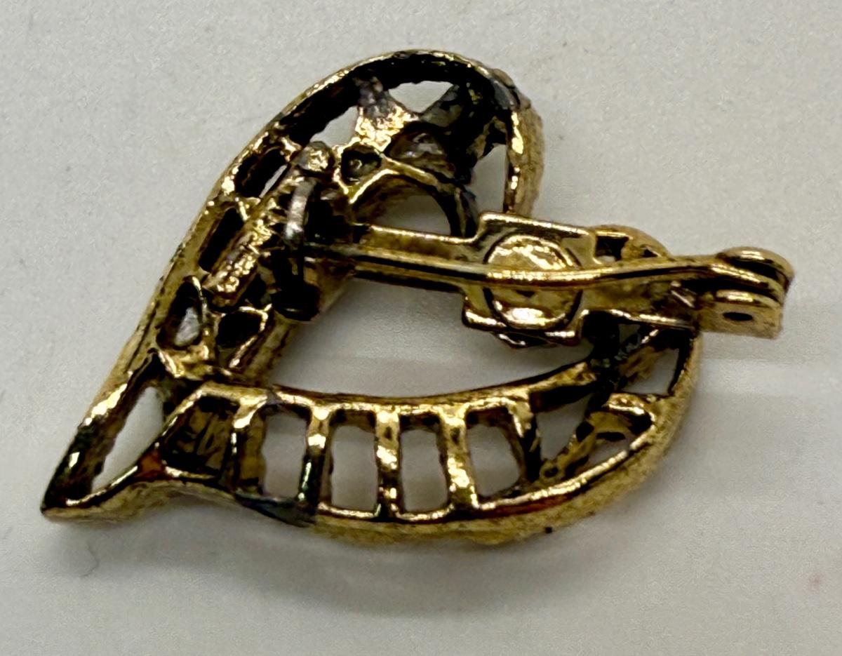 Vintage Gold Tone Faux Turquoise Ladder Heart Brooch Pin