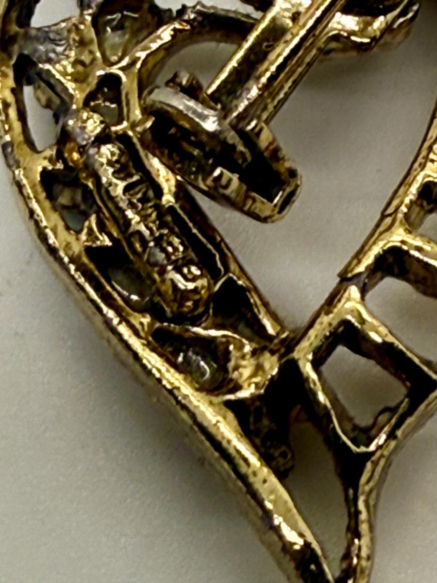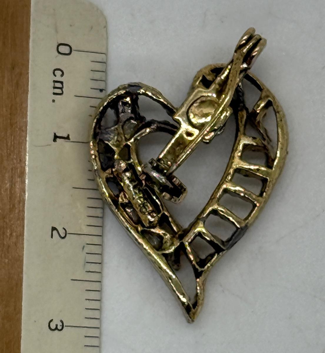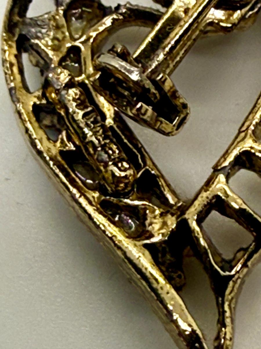 Vintage Gold Tone Faux Turquoise Ladder Heart Brooch Pin