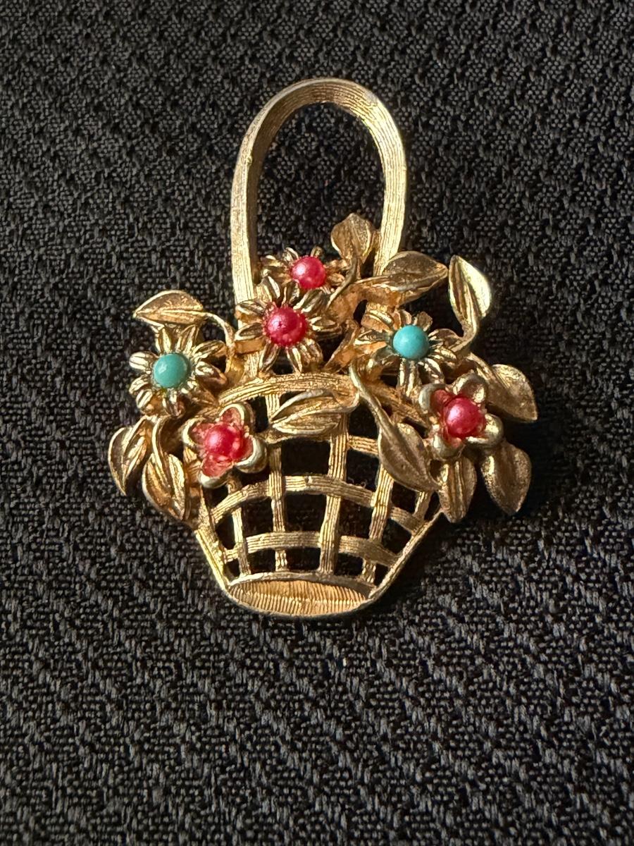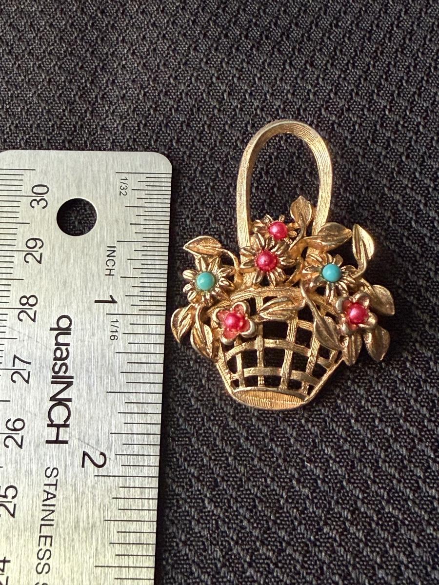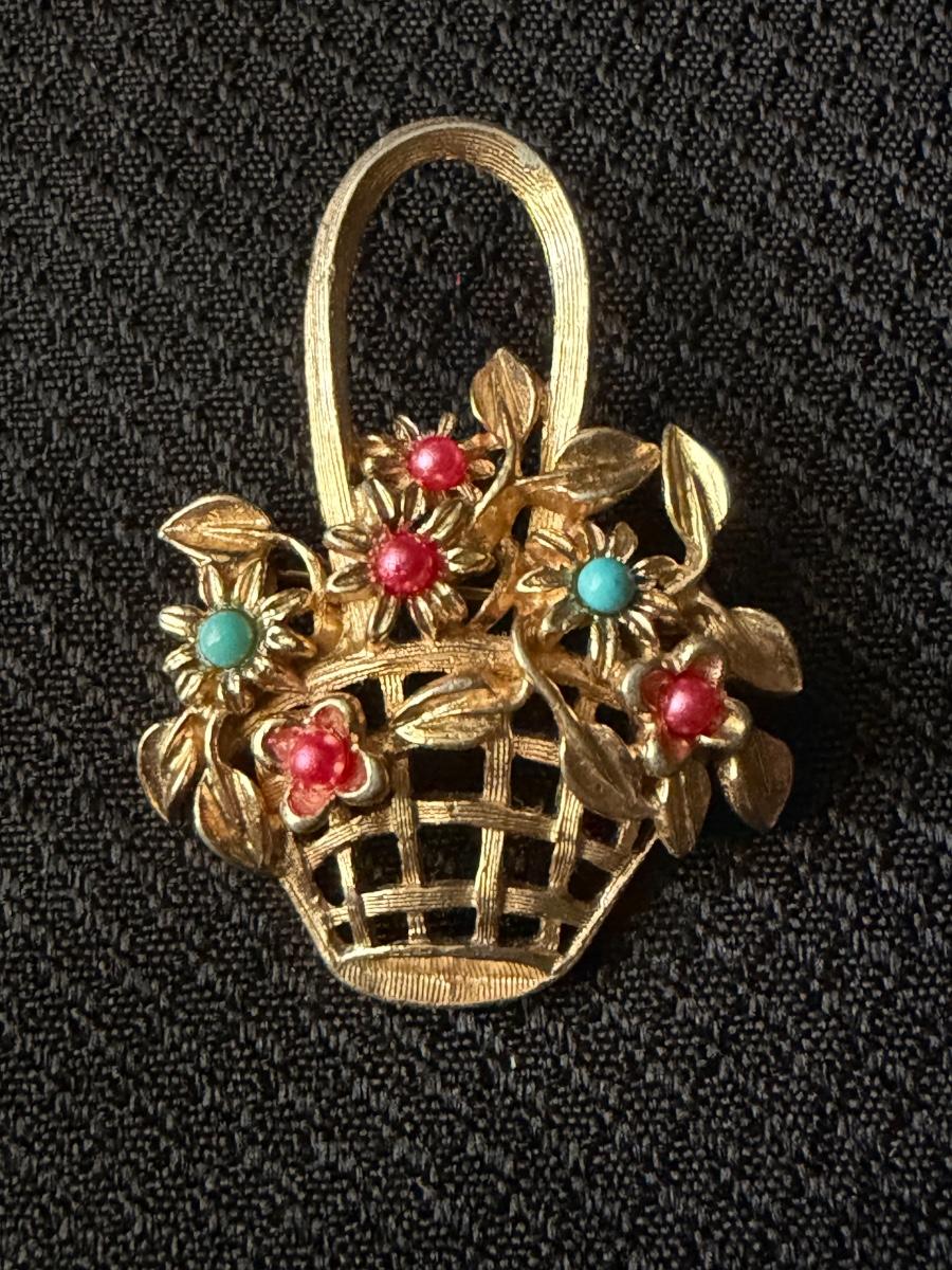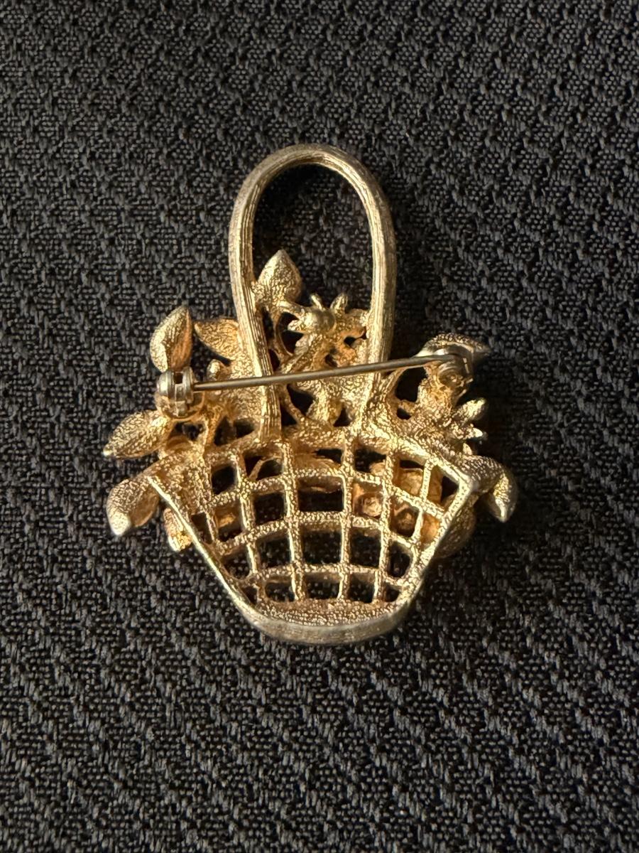 Vintage gold tone flower basket brooch