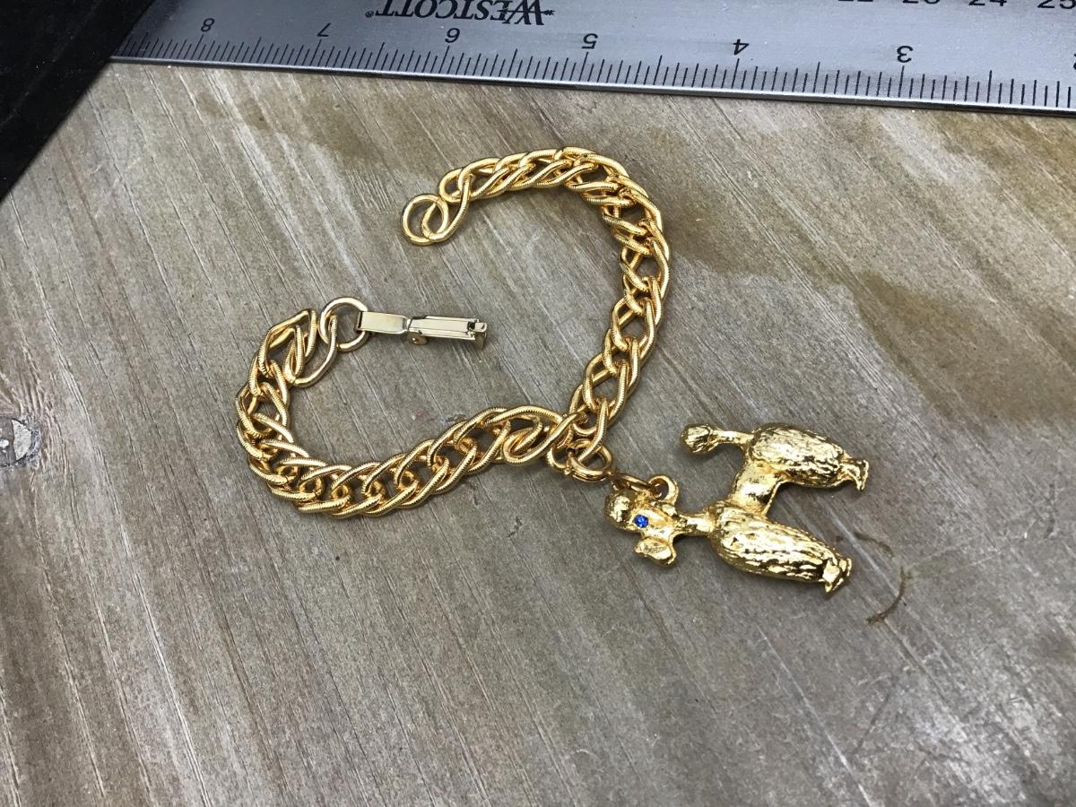 Vintage Gold Tone French Poodle Dog Charm Bracelet