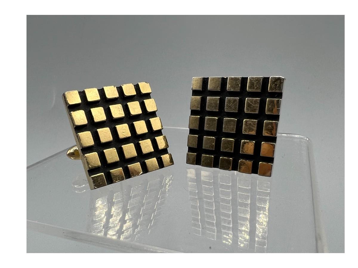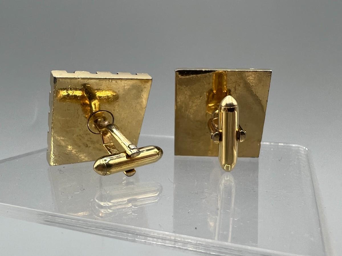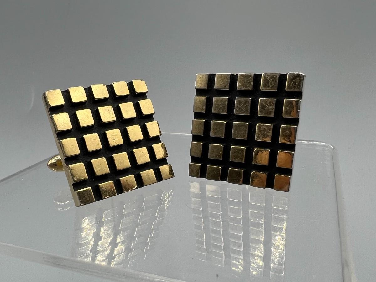 Vintage Gold Tone Geometric Blocks Cuff Links
