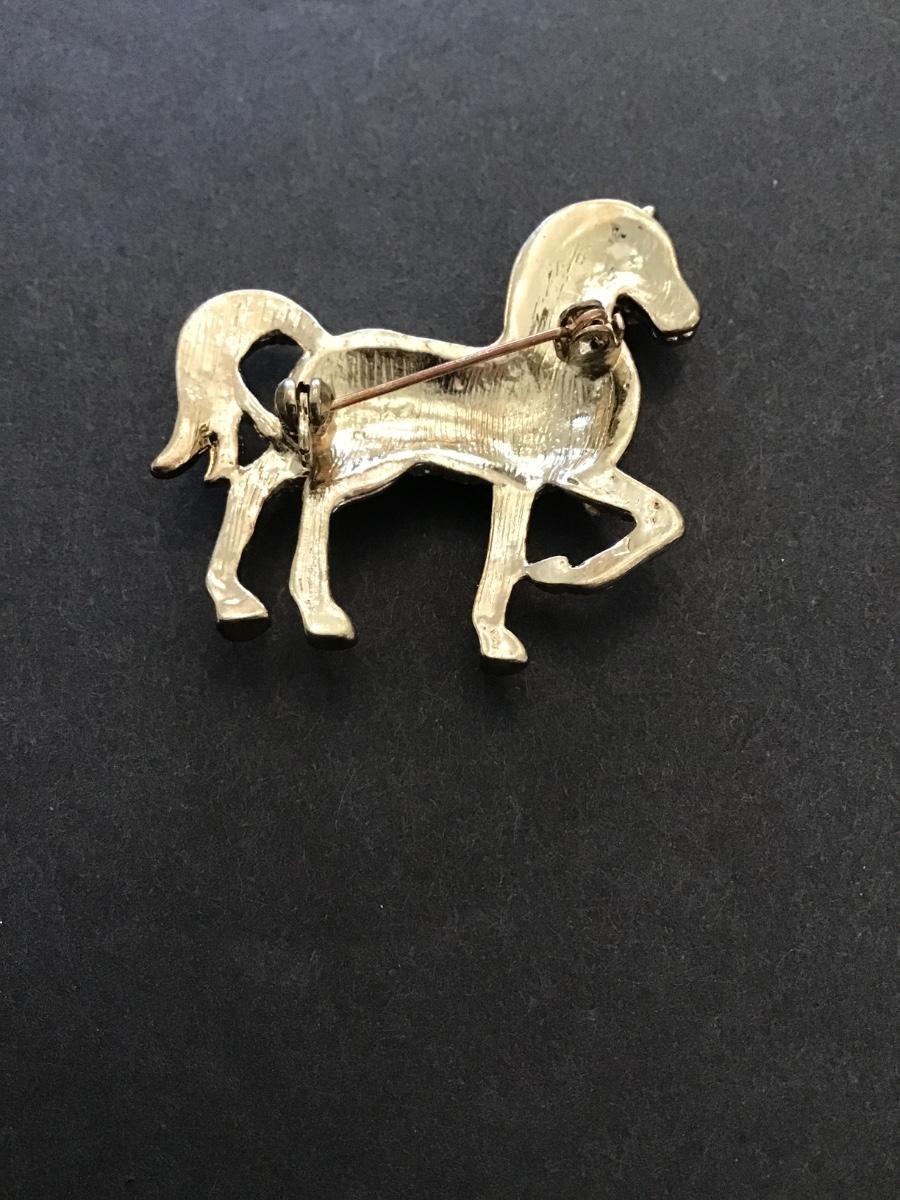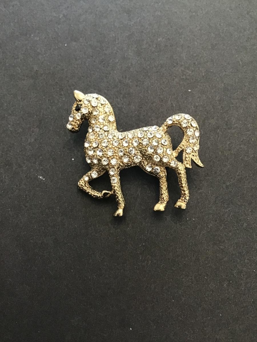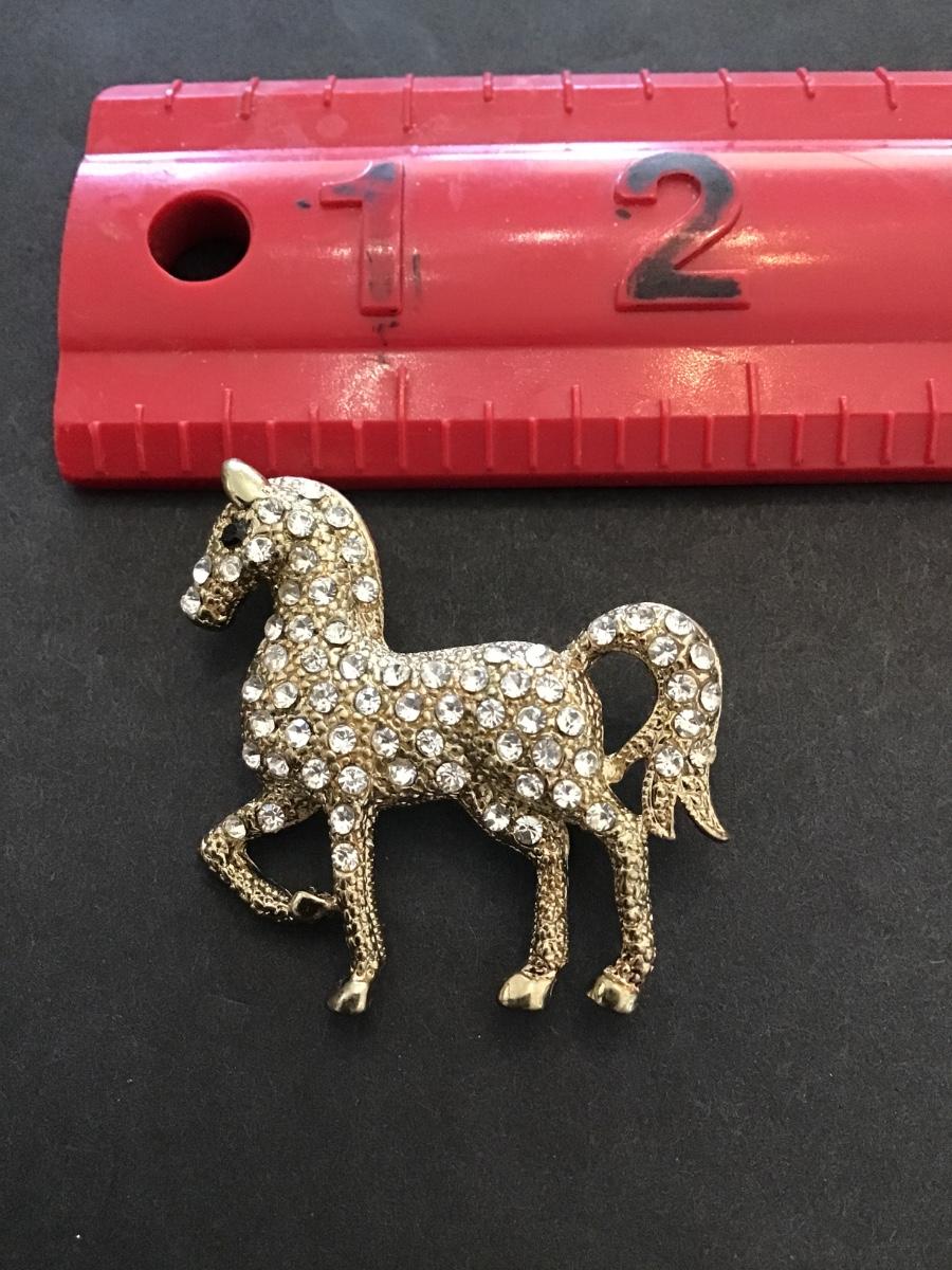 Vintage gold tone Horse lapel pin with rhinestones Please see attached photos.