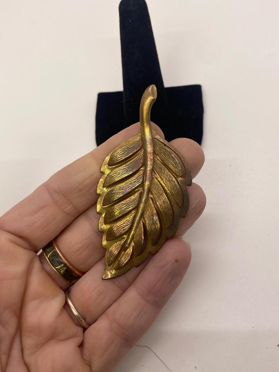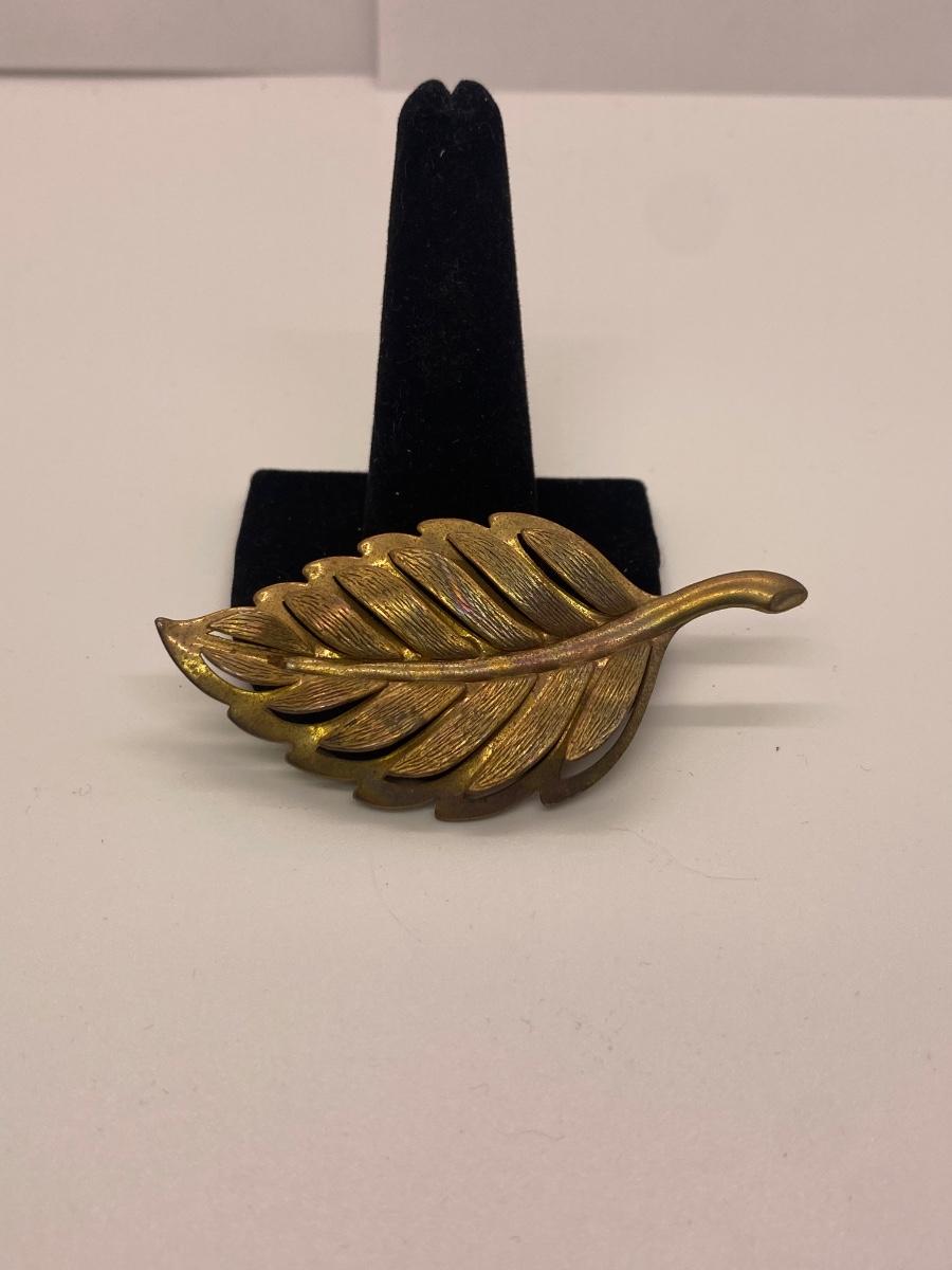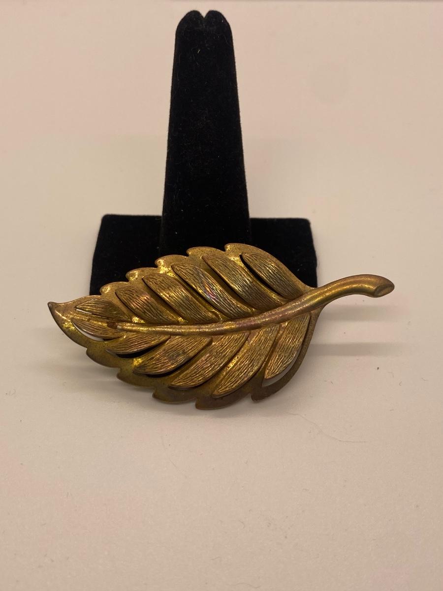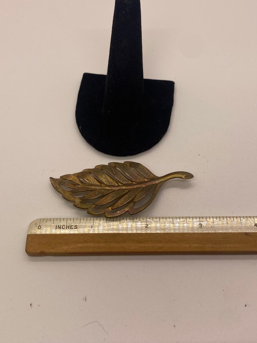 Vintage Gold Tone Leaf Shaped Pin Brooch. Good condition, light patina.