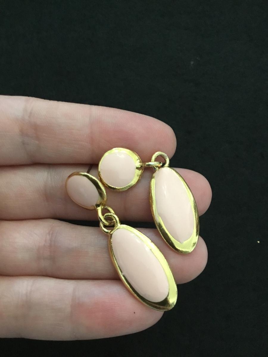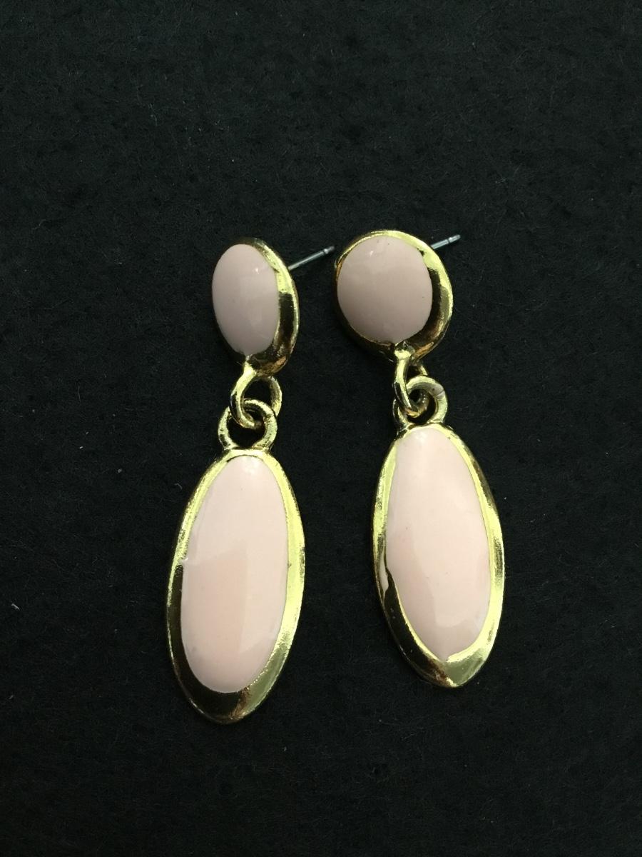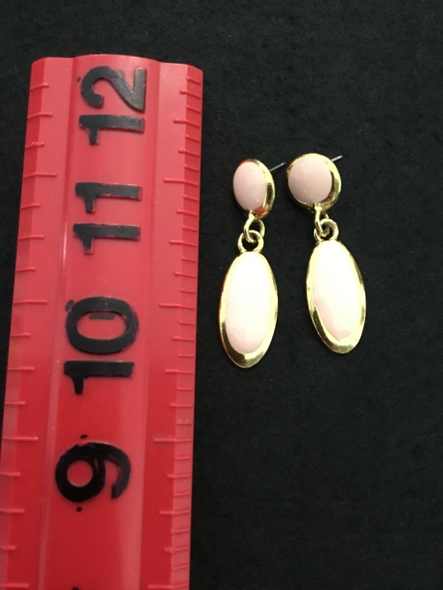 Vintage, gold tone, light pink enamel stud dangle earrings