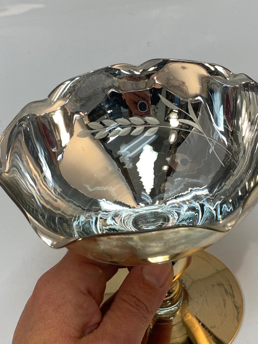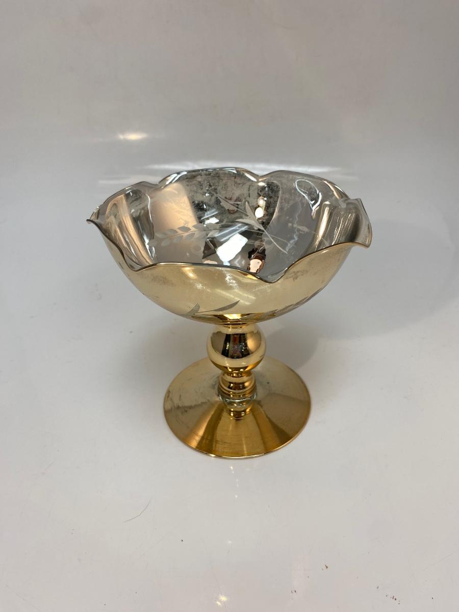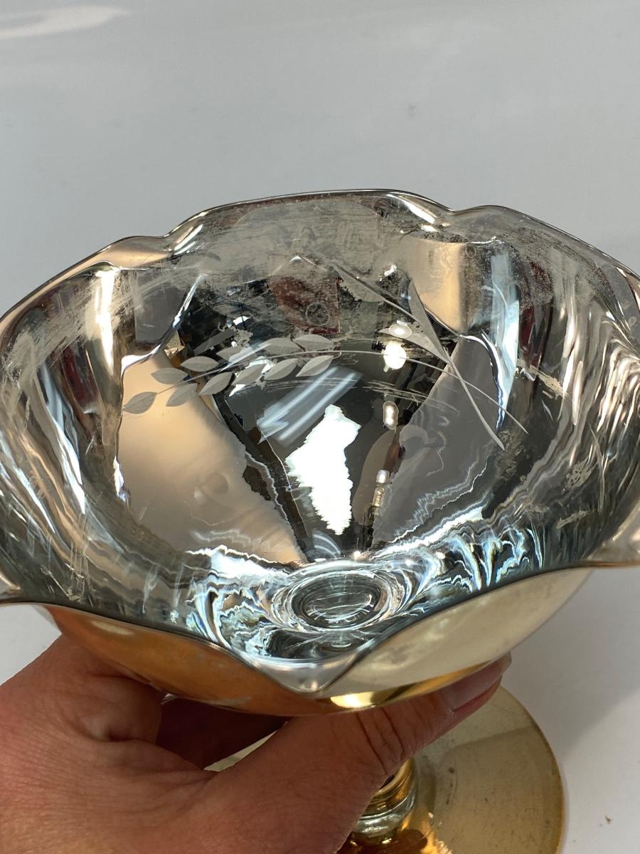 Vintage Gold & Silver Tone Lusterware Glass Compote Pedestal Candy Dish with Wheat Pattern