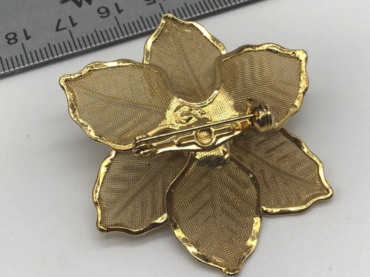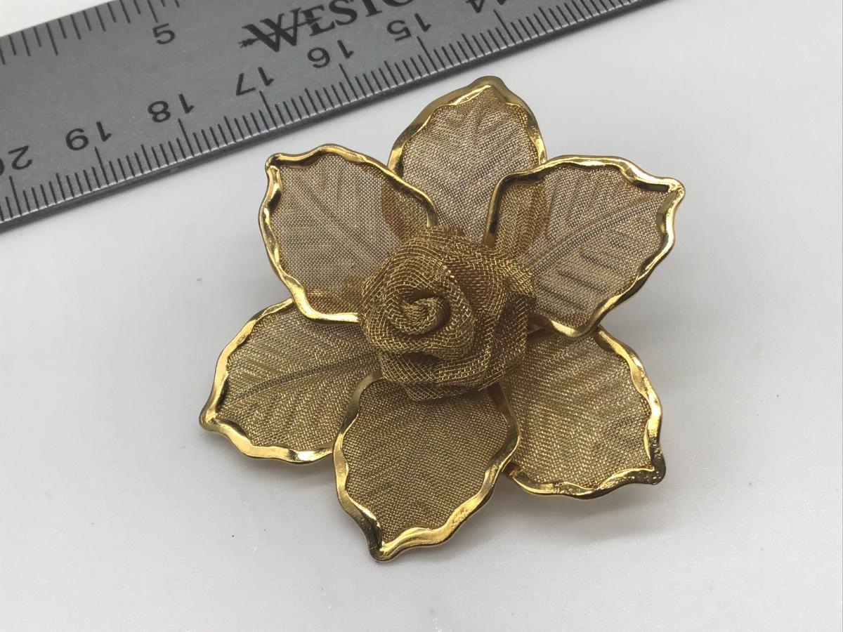 Vintage Gold Tone Mesh Flower Brooch Pin