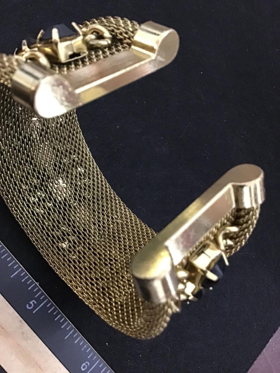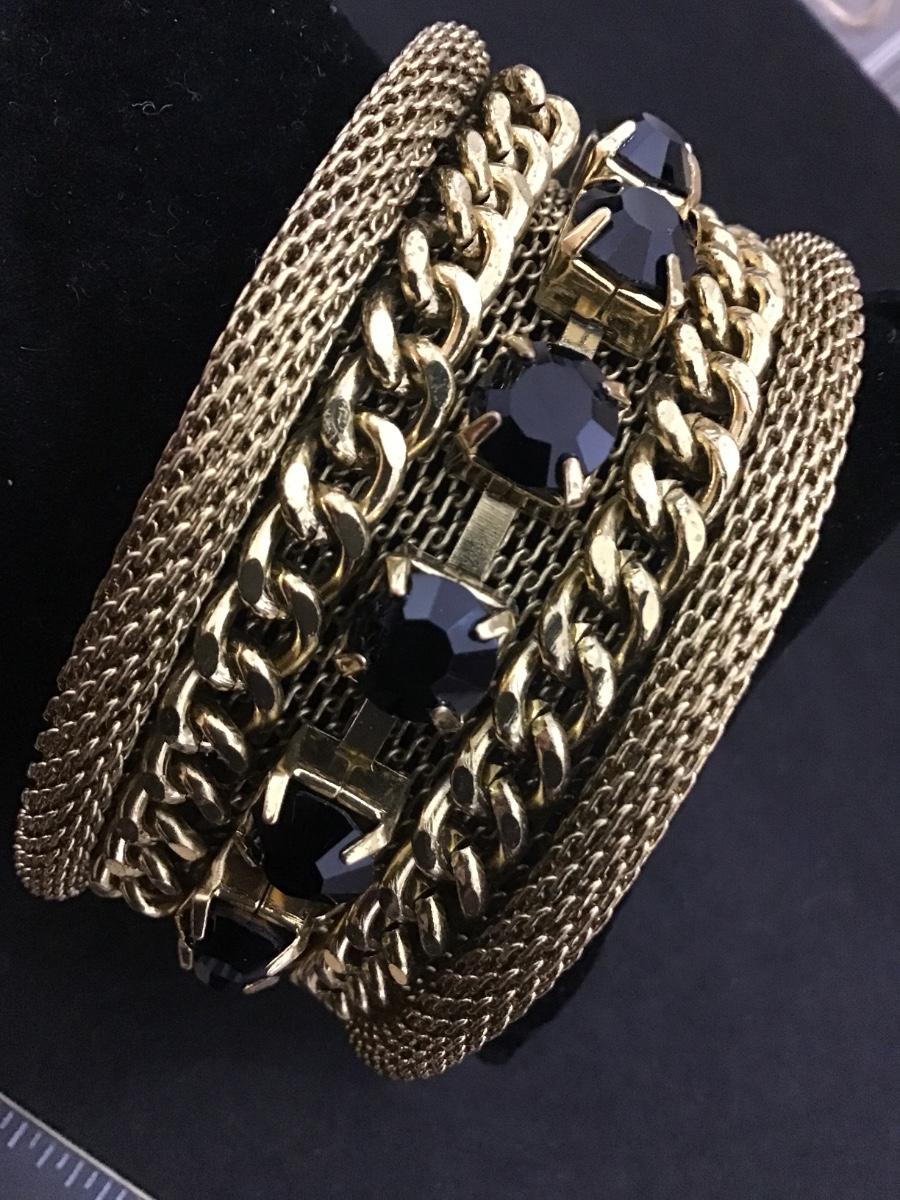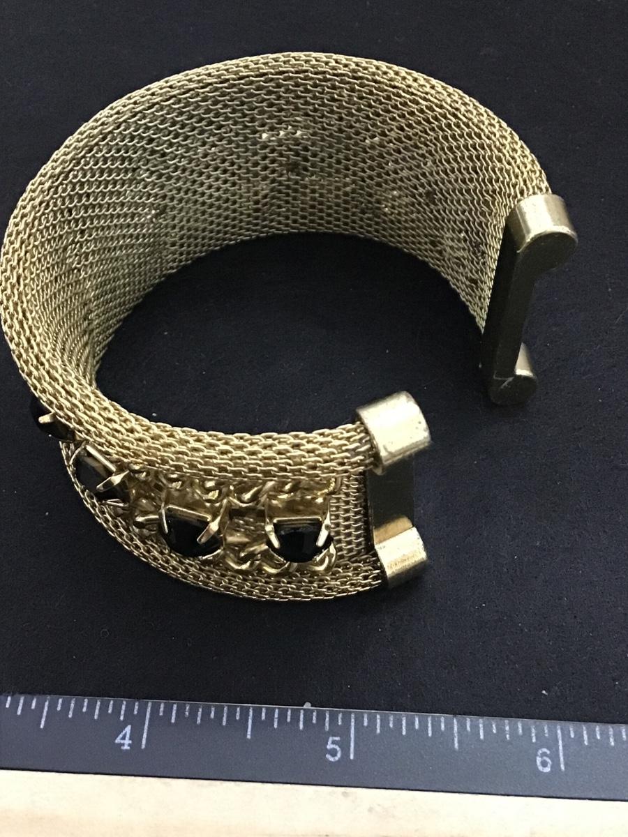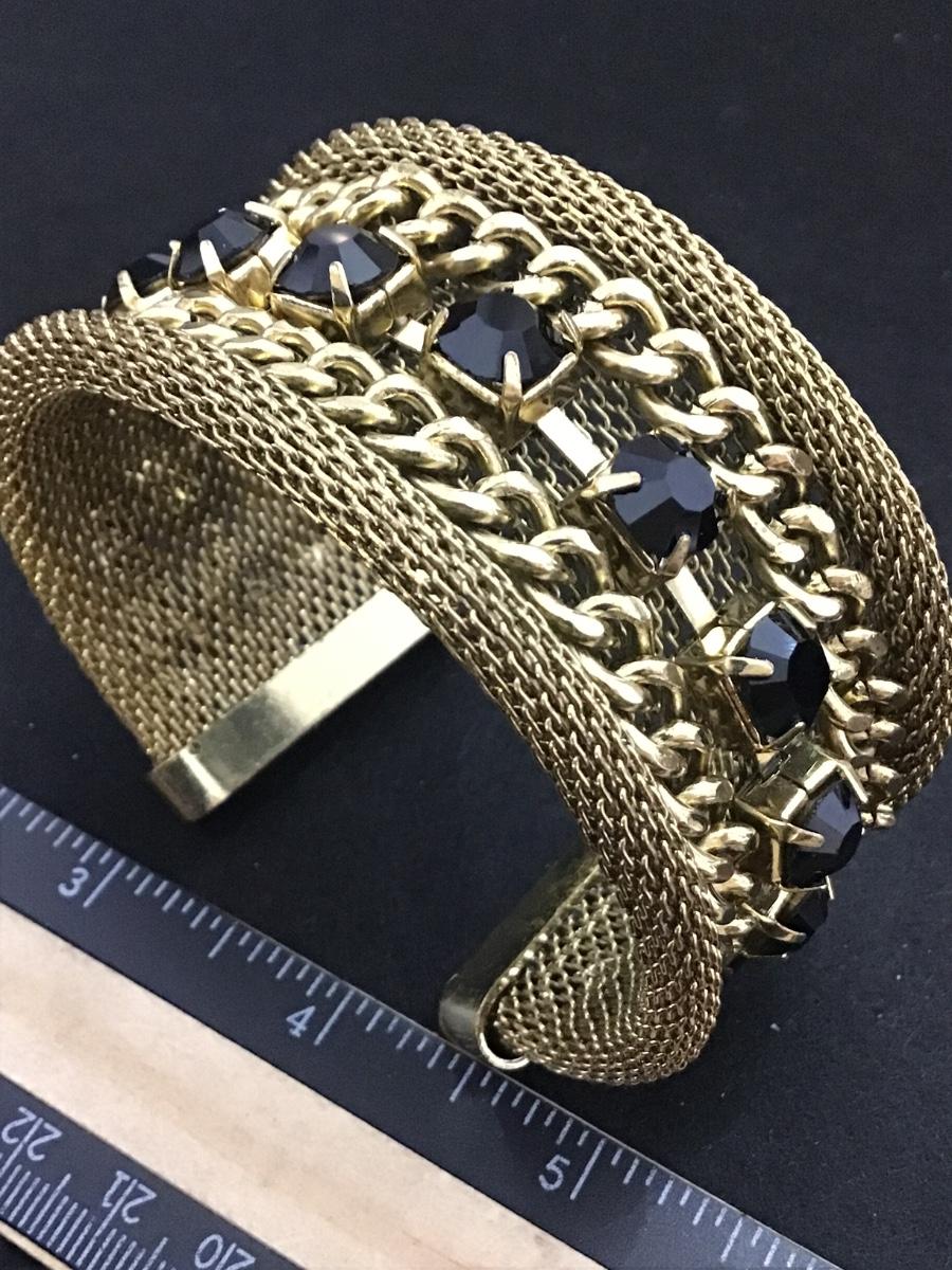 Vintage Gold Tone Mesh Wide Black Glass Gold Wide link Chain. Gorgeous