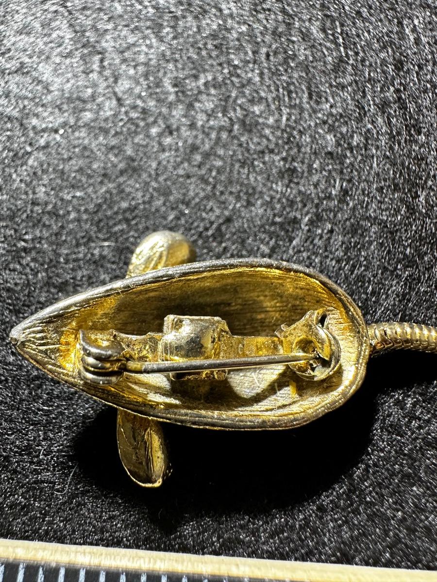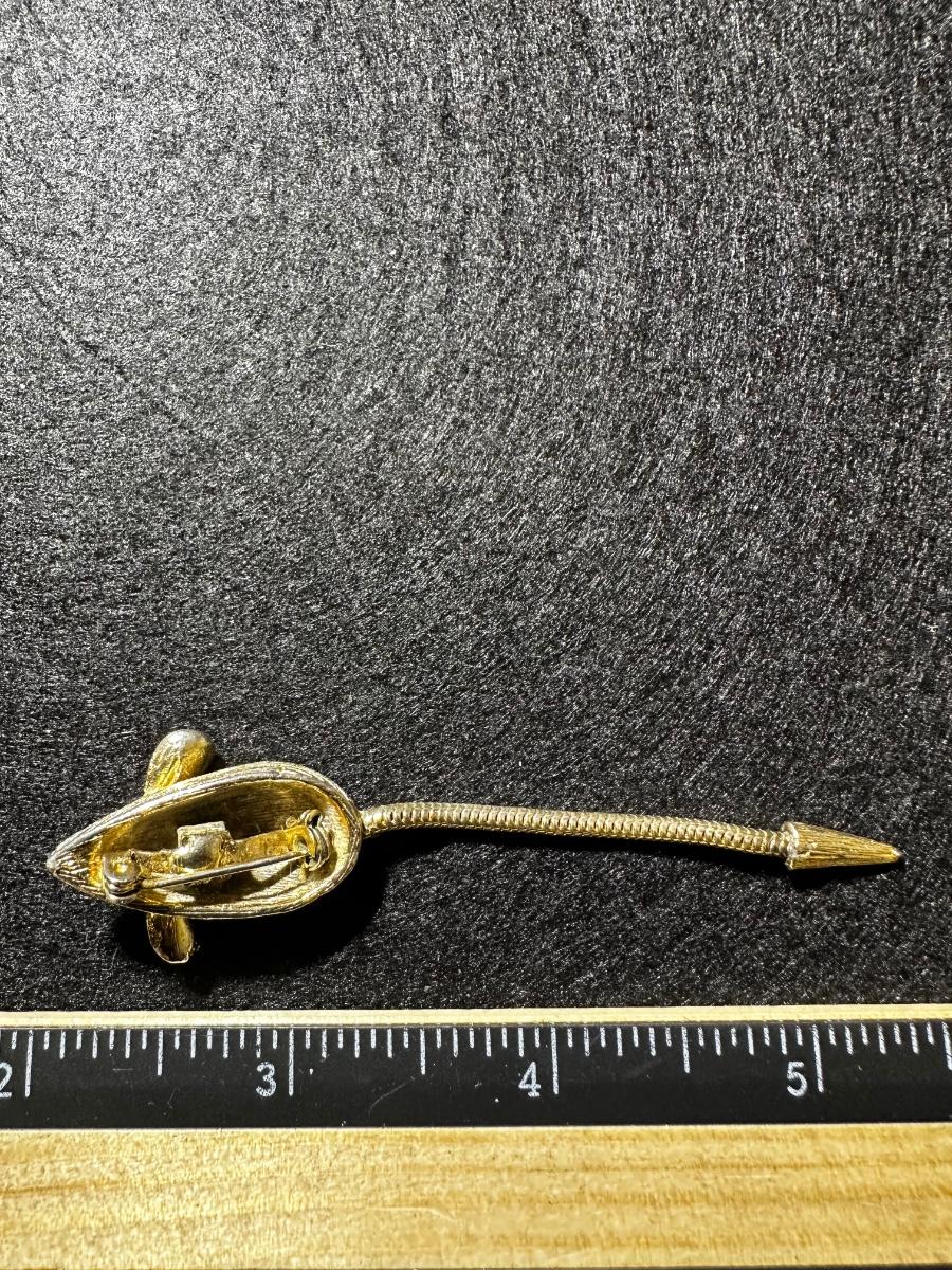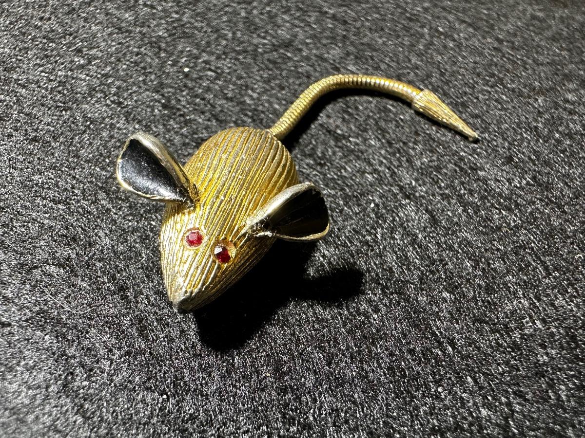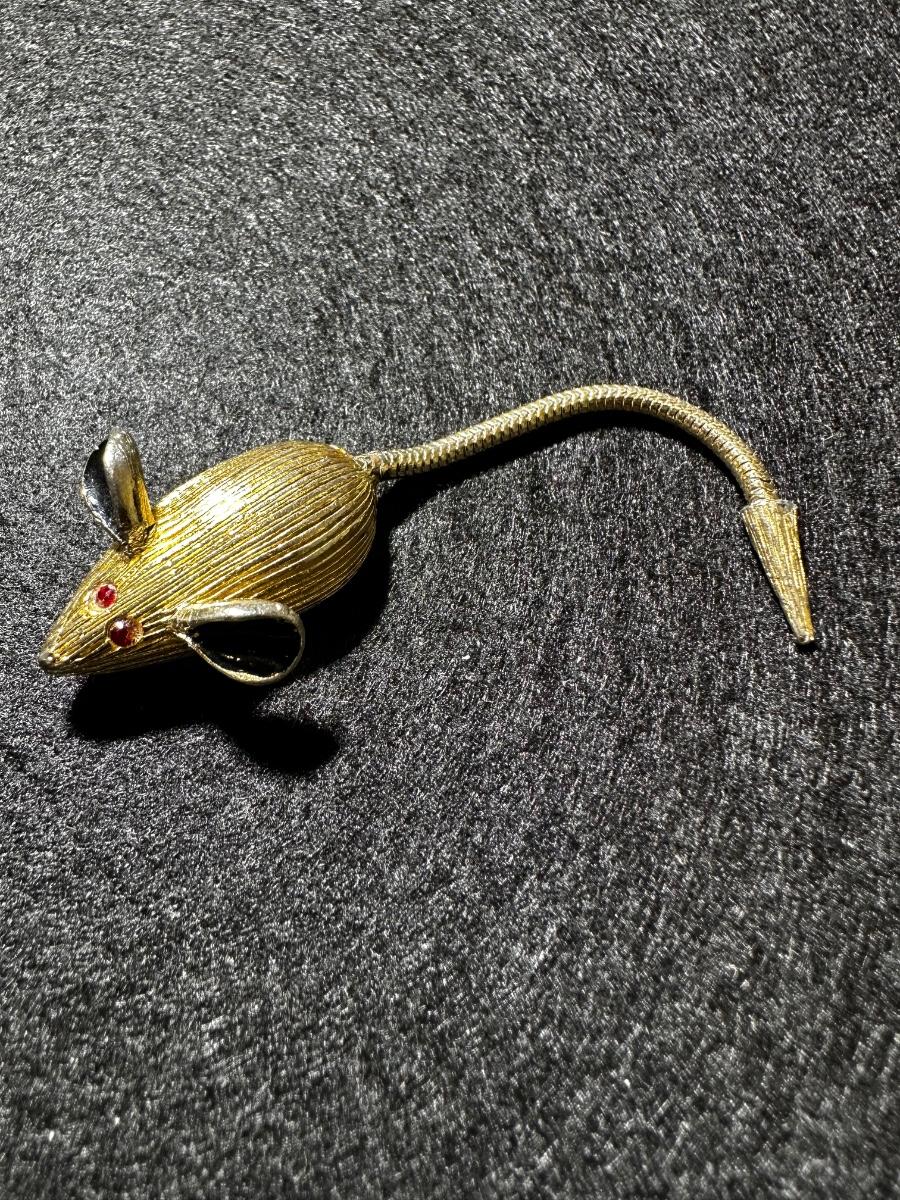 Vintage Gold Tone Mouse Brooch/Pin Ruby Red Rhinestone Eyes & Movable Tail