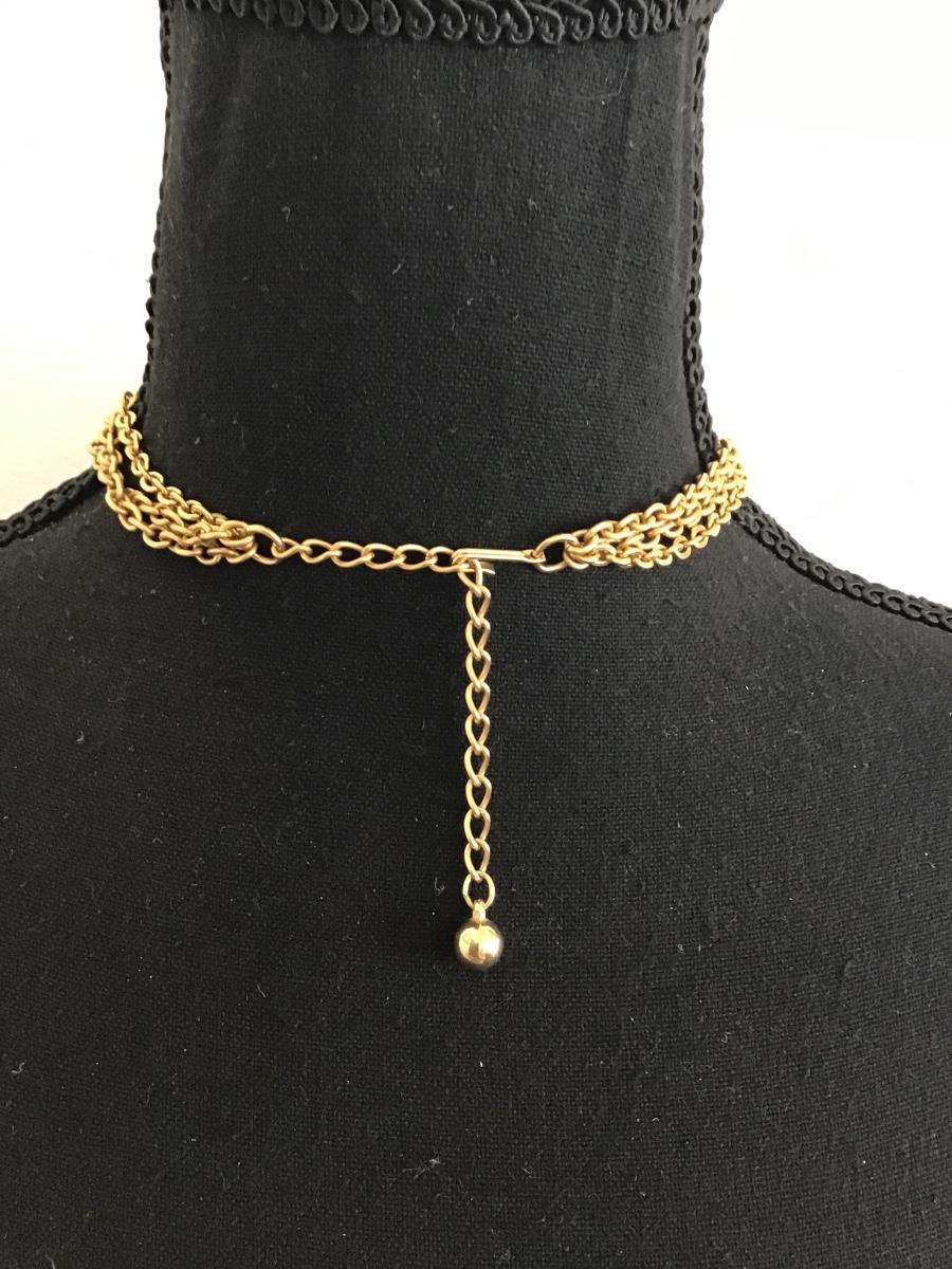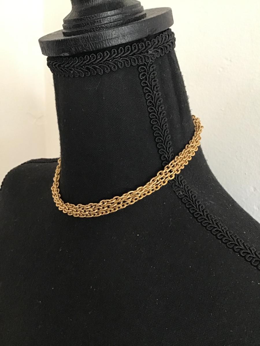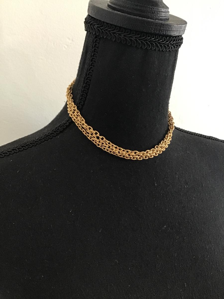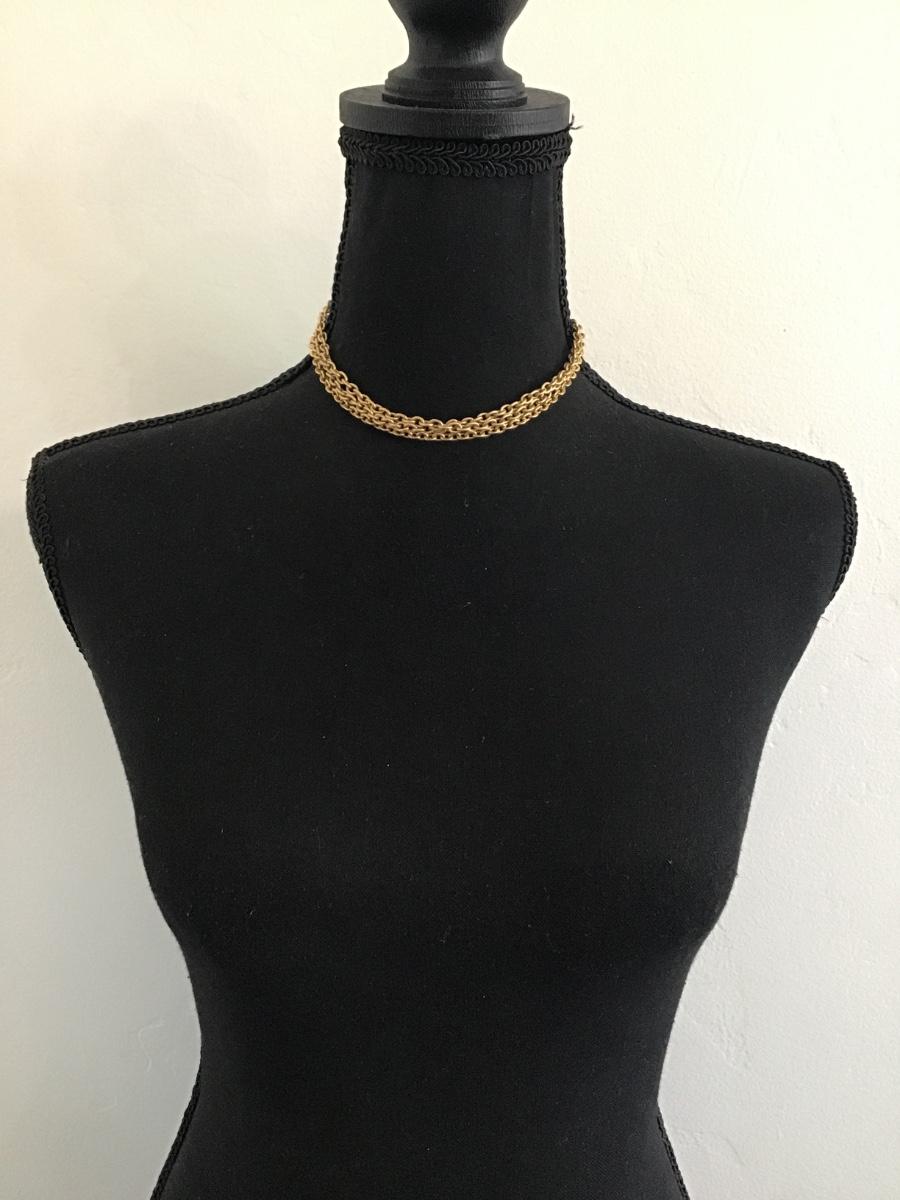 Vintage, gold, tone, multi strand, chain, choker necklace