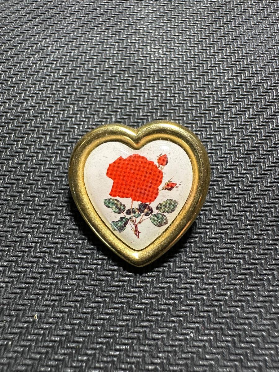 Vintage Gold tone painted rose heart pin