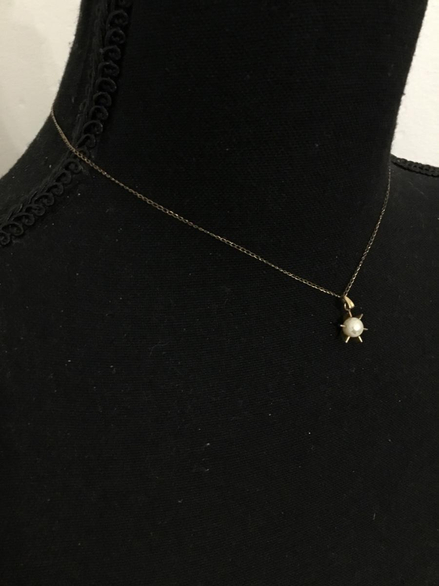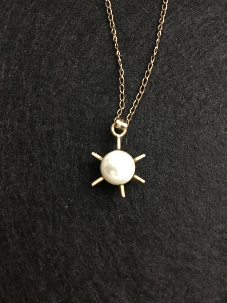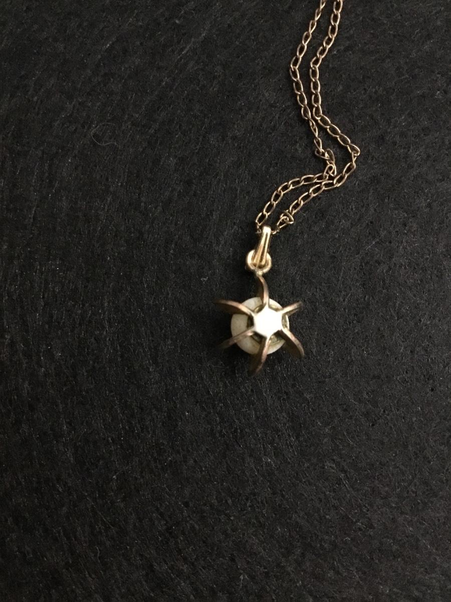 Vintage gold tone pendant with organic pearl and gold filled chain necklace