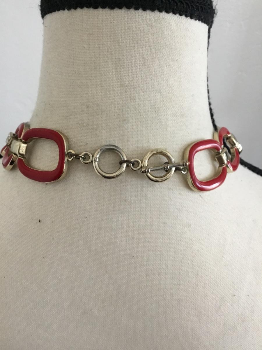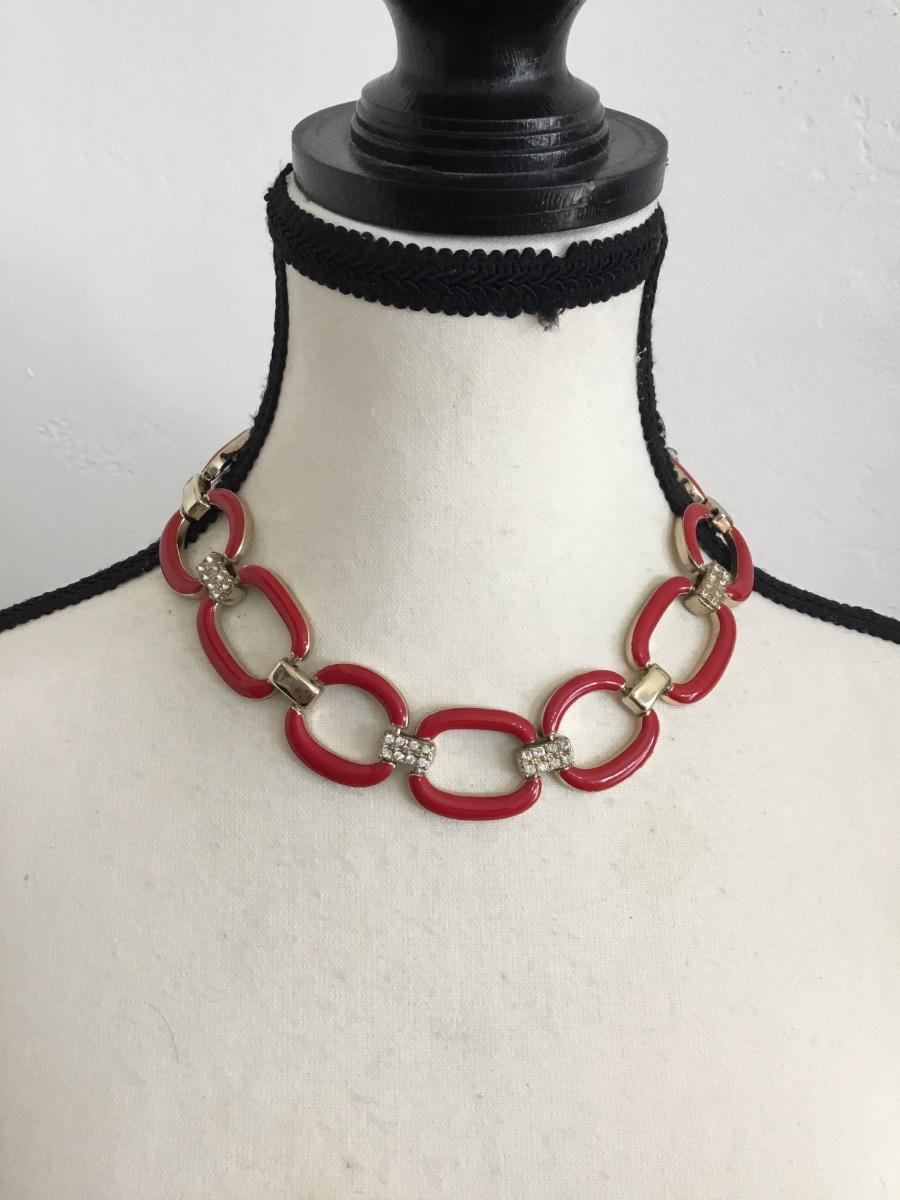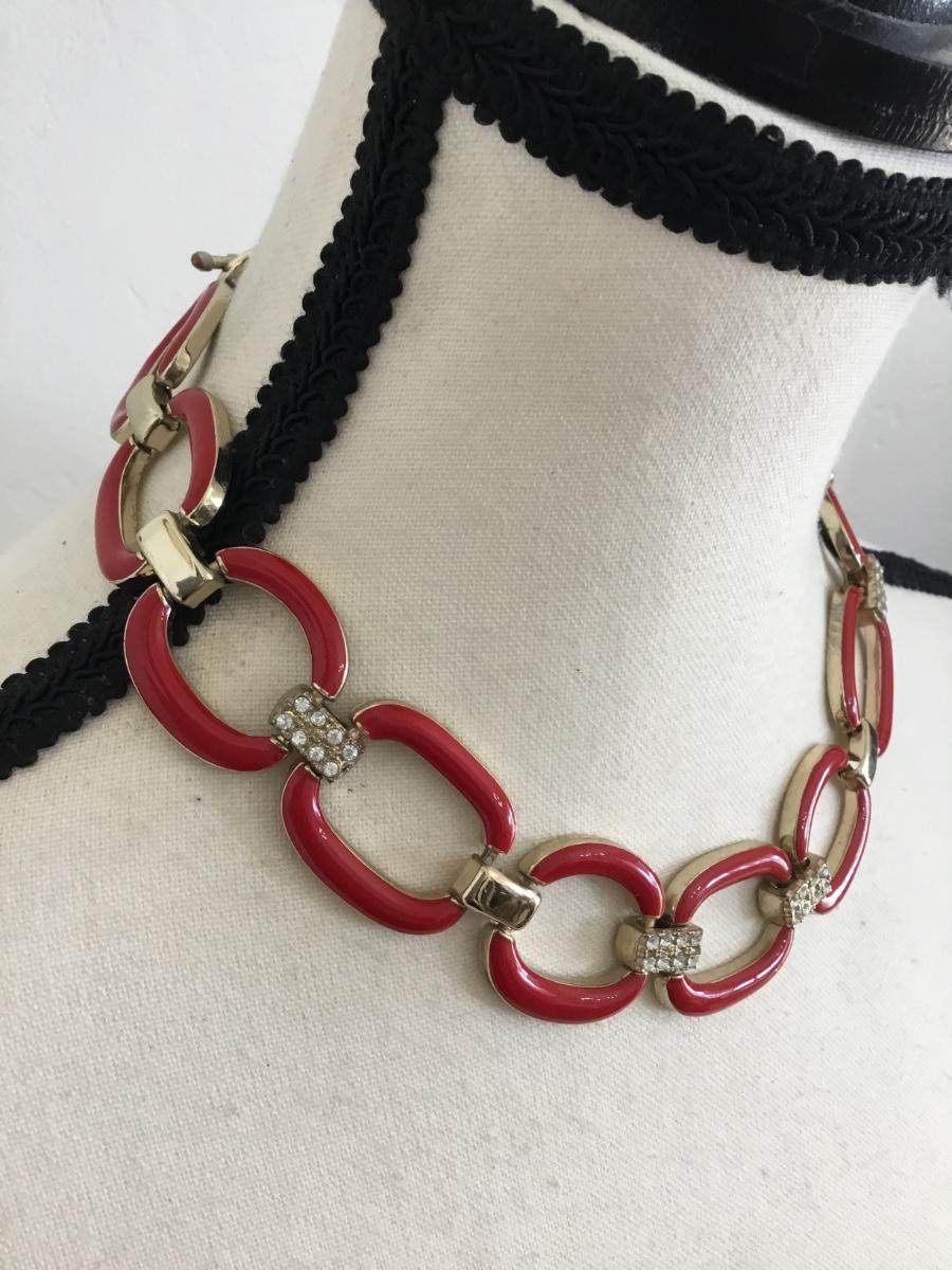Vintage gold tone, red enamel chain-link statement, necklace