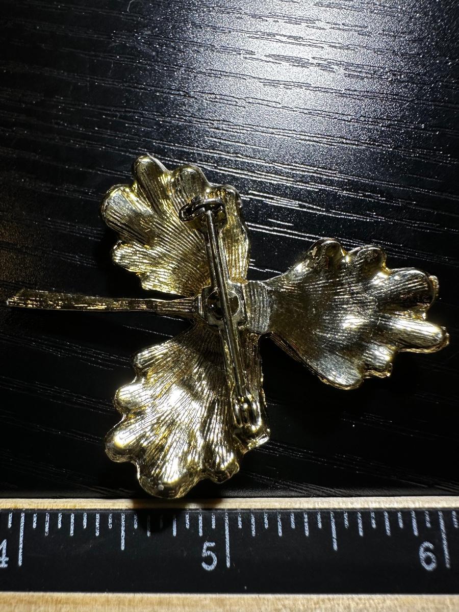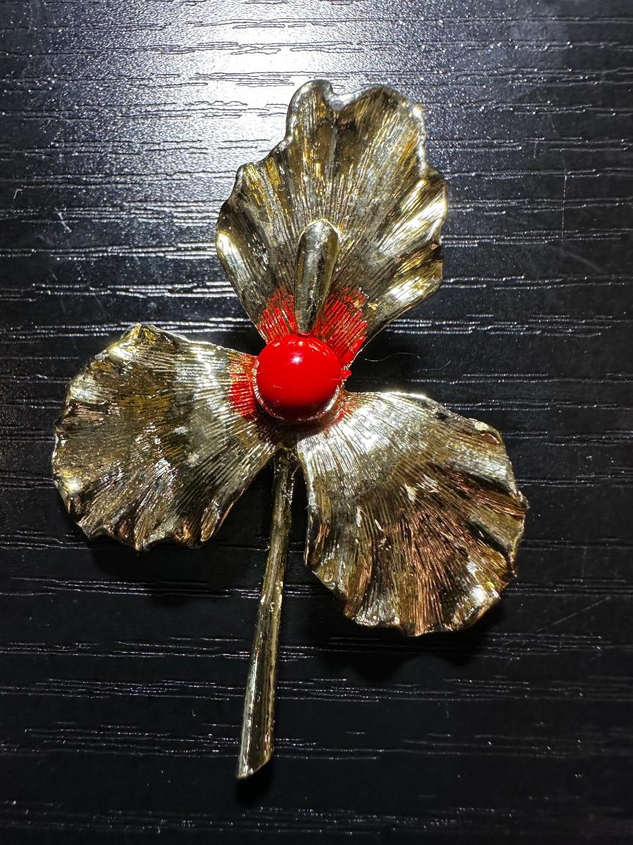 Vintage gold tone red faux pearl flower brooch
